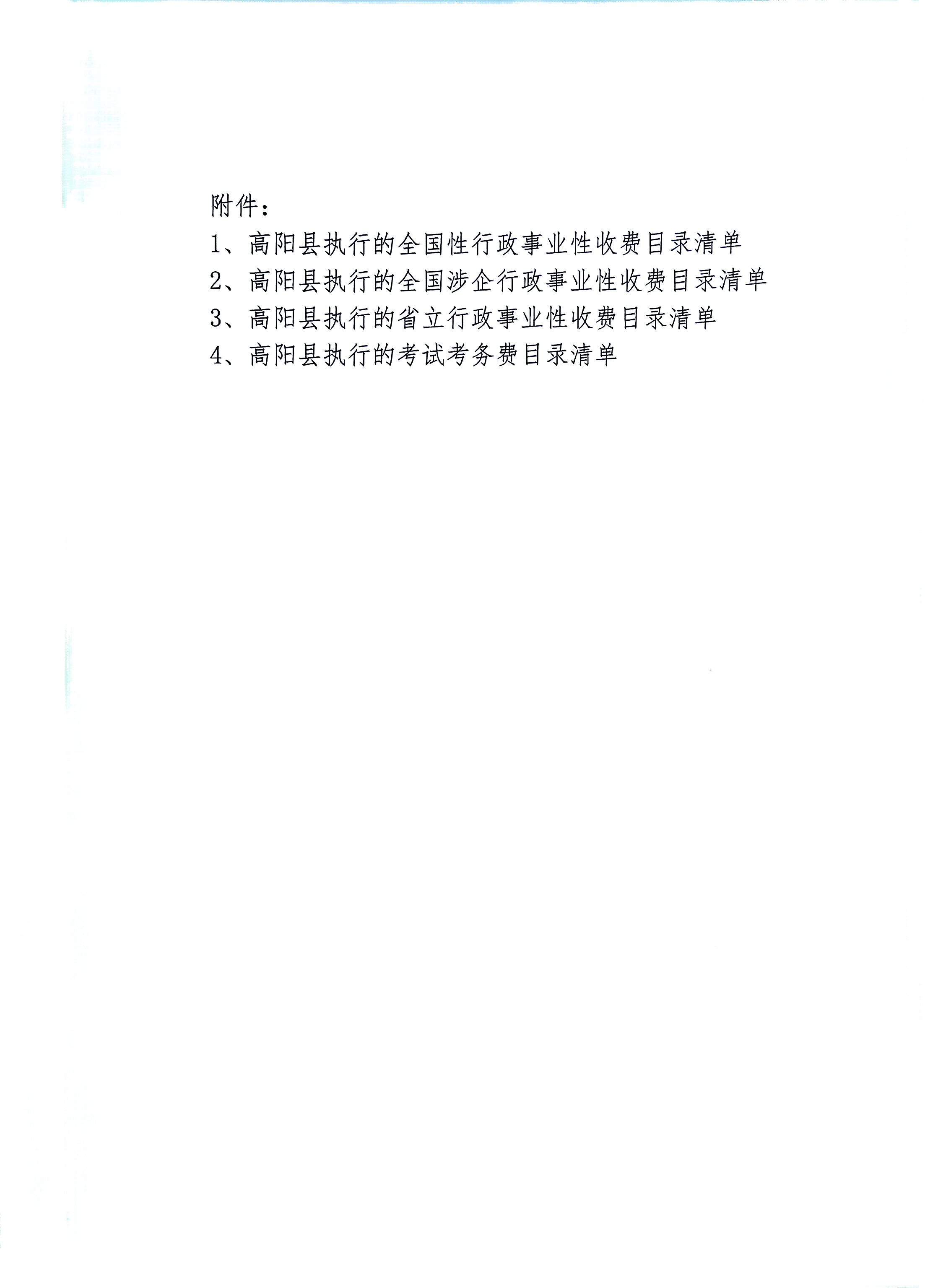 高阳县财政局 高阳县发展和改革局关于发布2025年行政事业性收费目录的公告