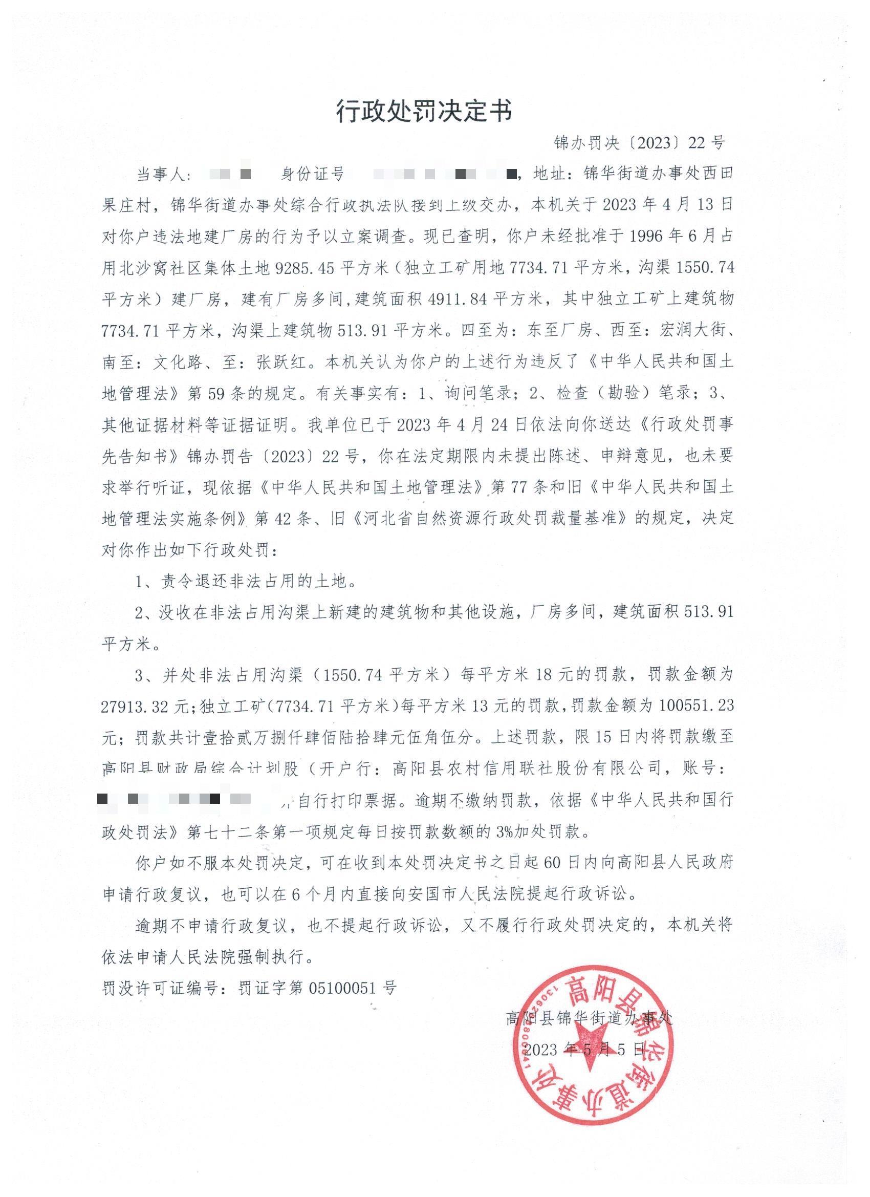 锦办罚决(2023)22号
