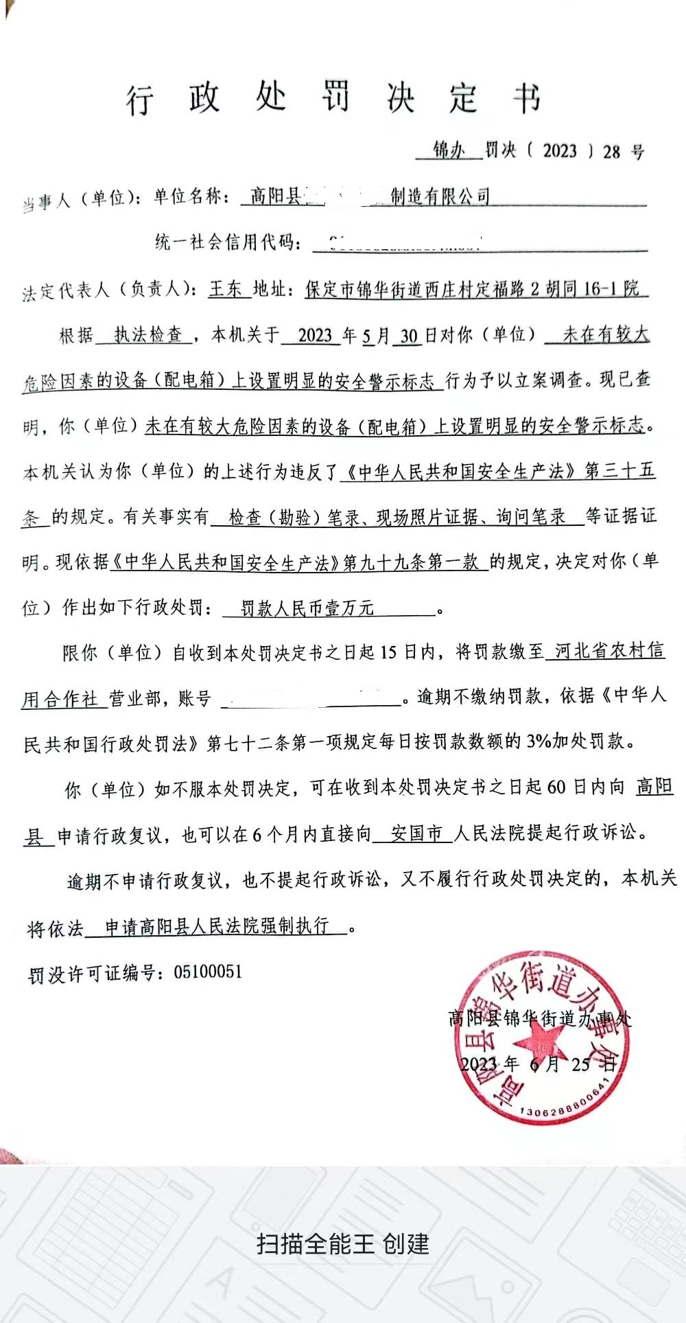 锦办罚决(2023)28号