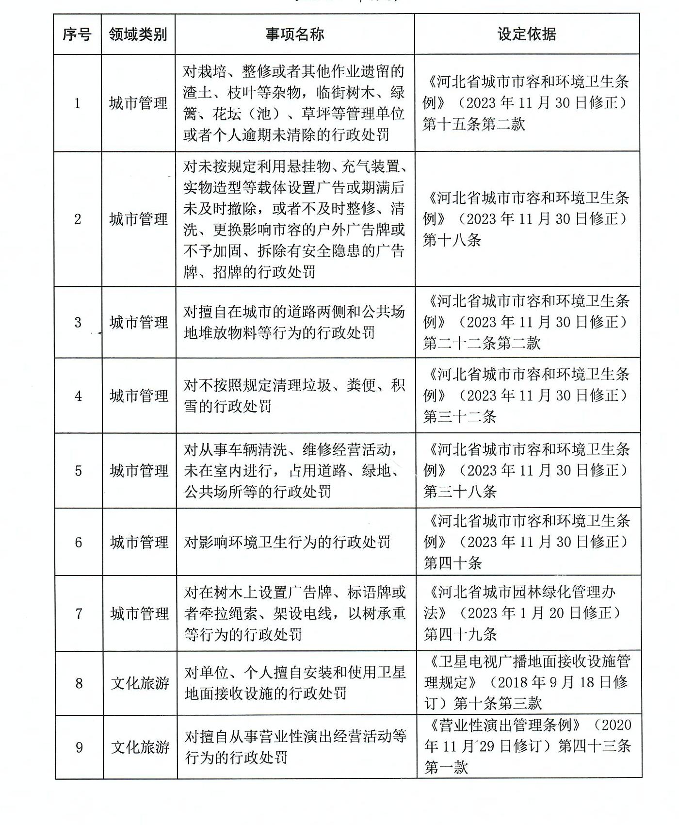 高阳县庞口镇人民政府执法事项清单