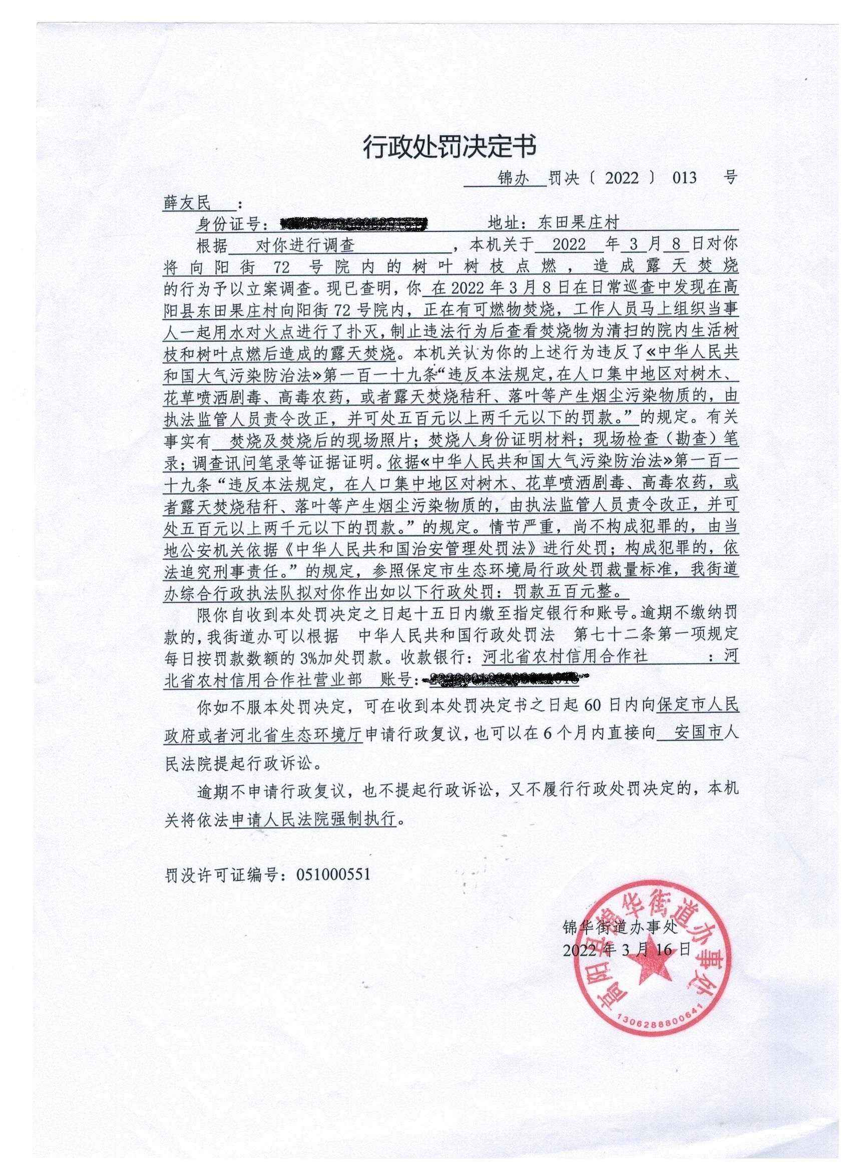 锦办罚决【2022】013号