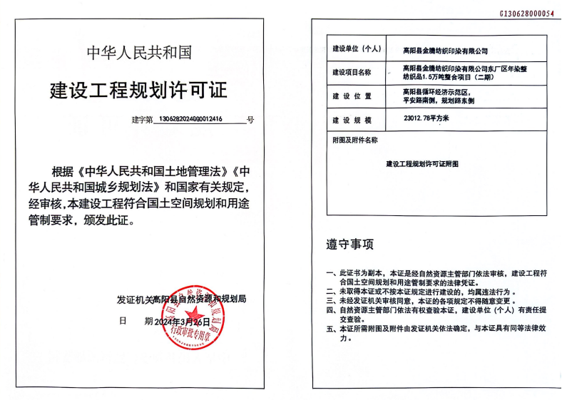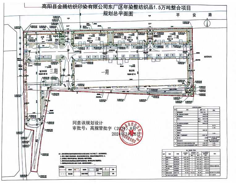 高阳县金腾纺织印染有限公司东厂区年染整纺织品1.5万吨整合项目(一期)、(二期)