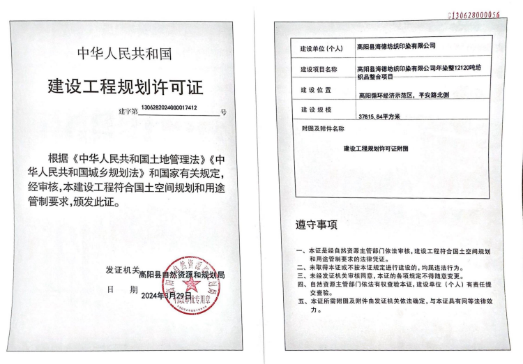 高阳县海德纺织印染有限公司年染整12120吨纺织品整合项目