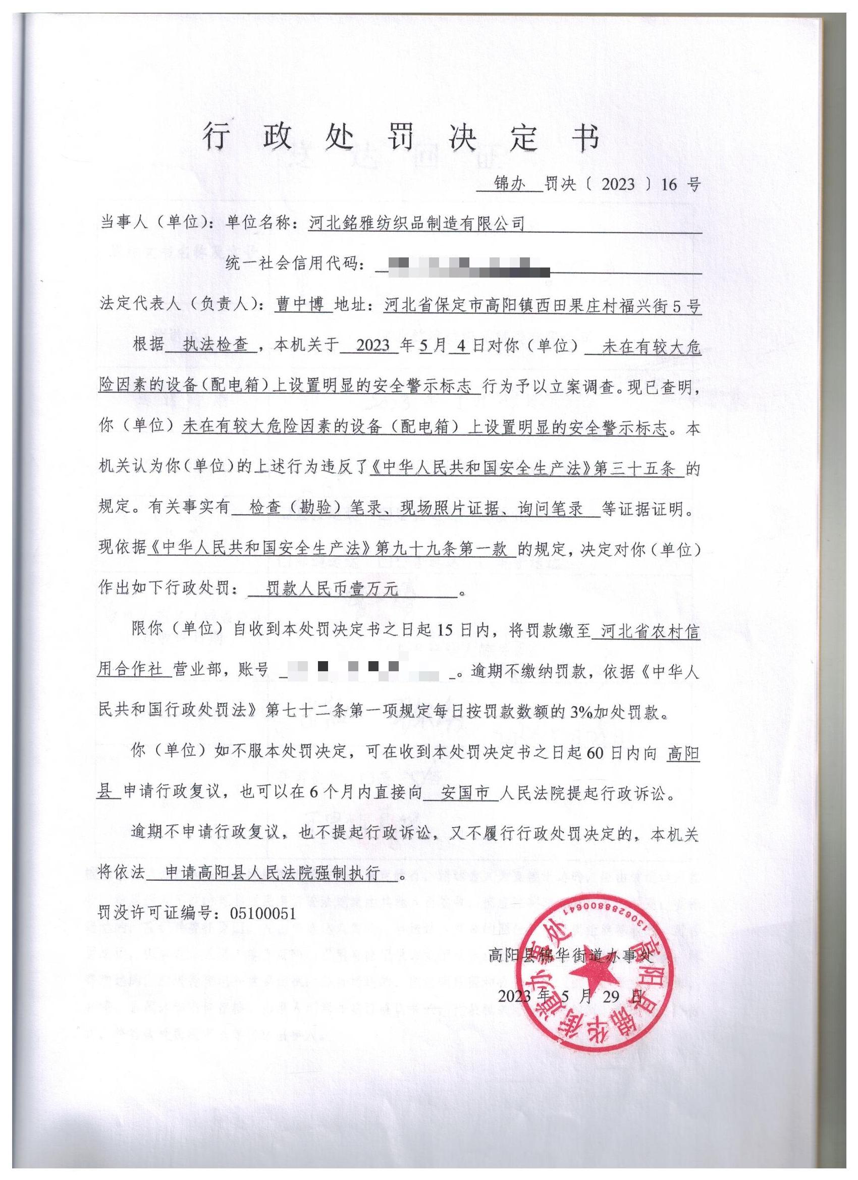 锦办罚决﹝2023﹞16号