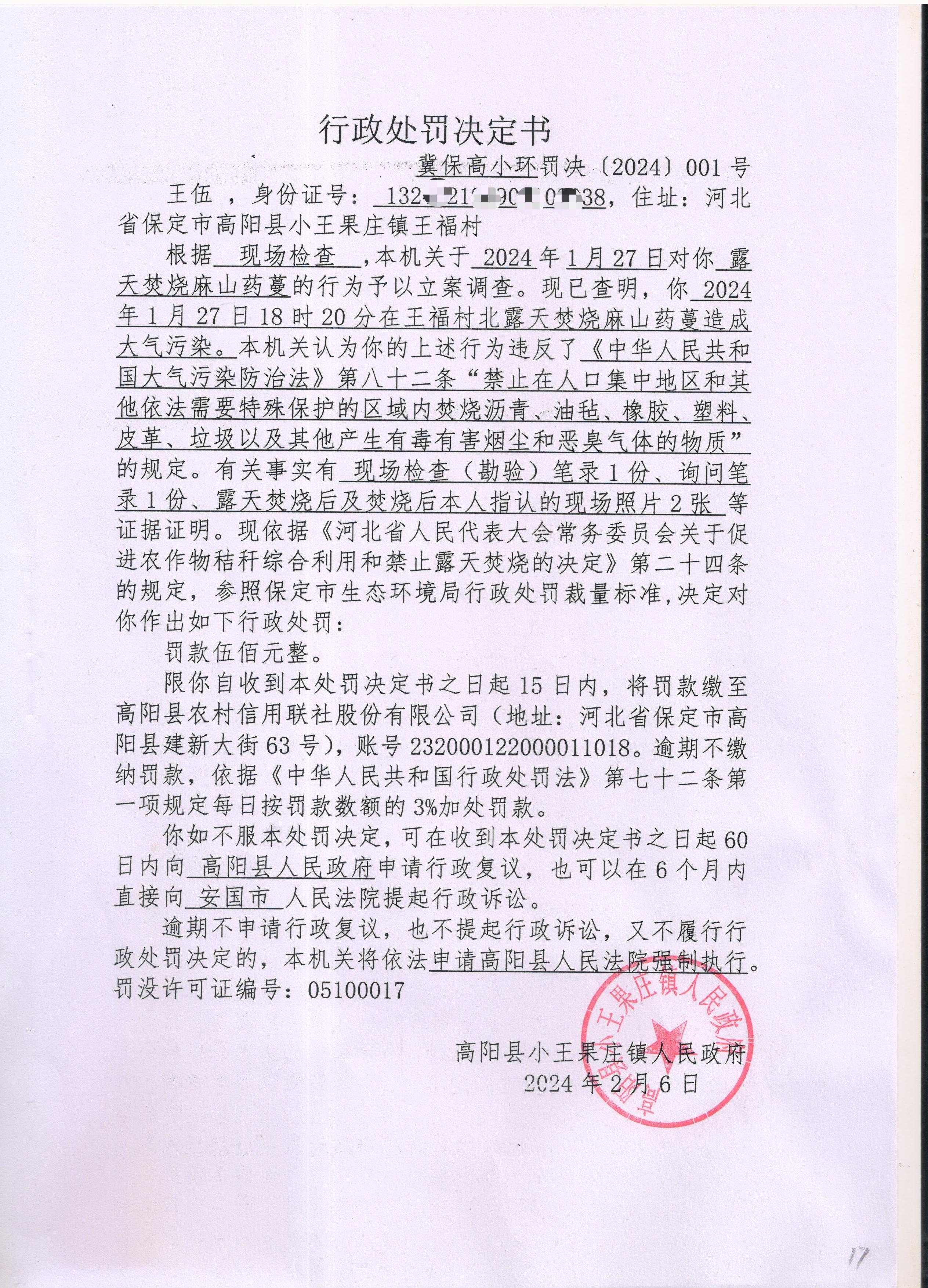 当前位置:首页 > 行政执法公示 > 高阳县小王果庄镇人民政府
