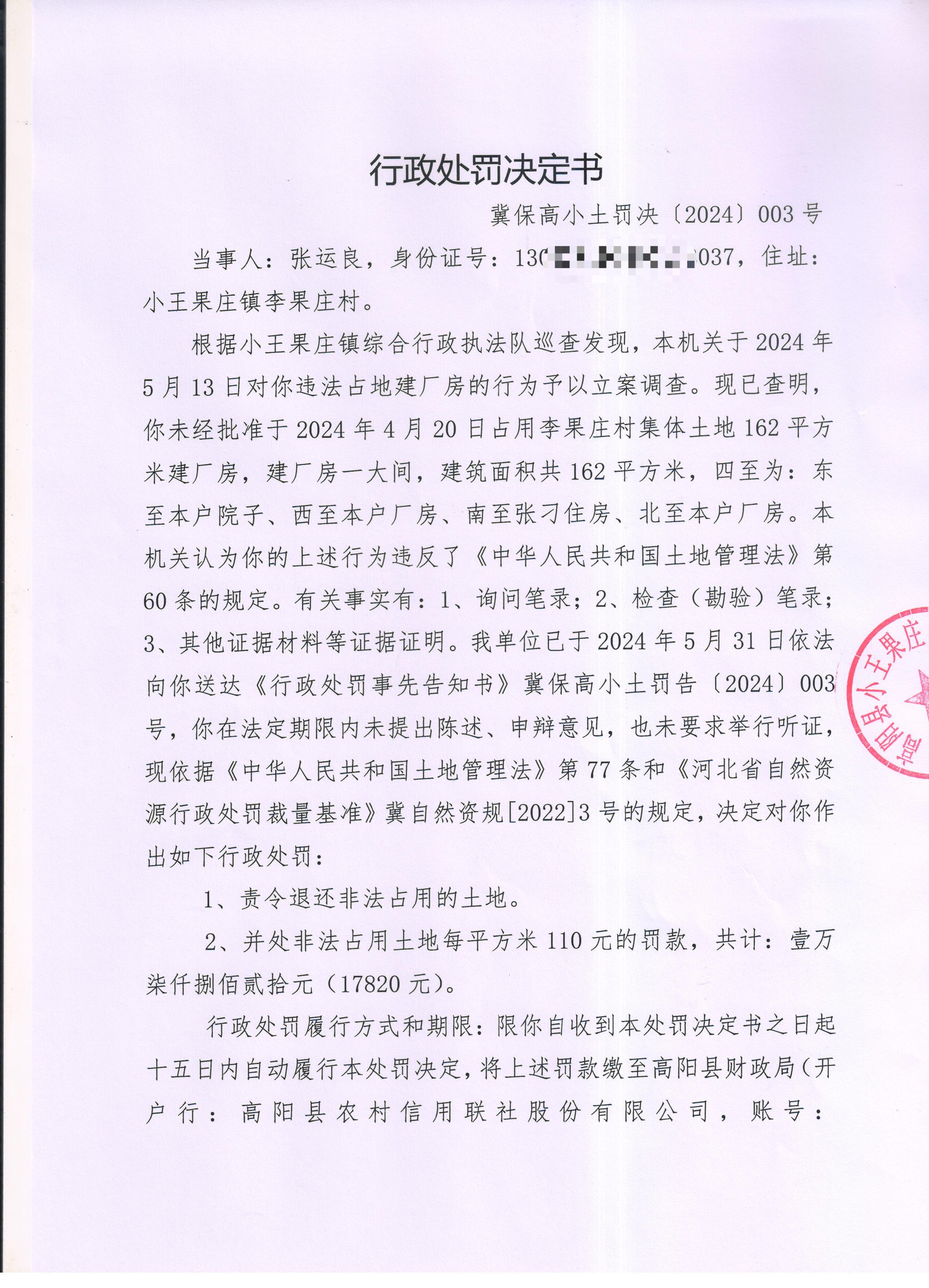 当前位置:首页 > 行政执法公示 > 高阳县小王果庄镇人民政府
