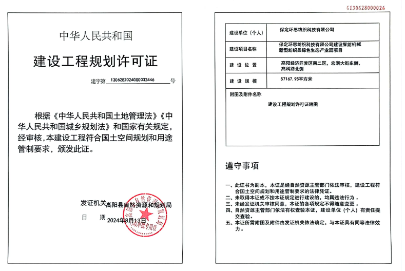 保定环思纺织科技有限公司建设智能机械新型纺织品绿色生态产业园项目