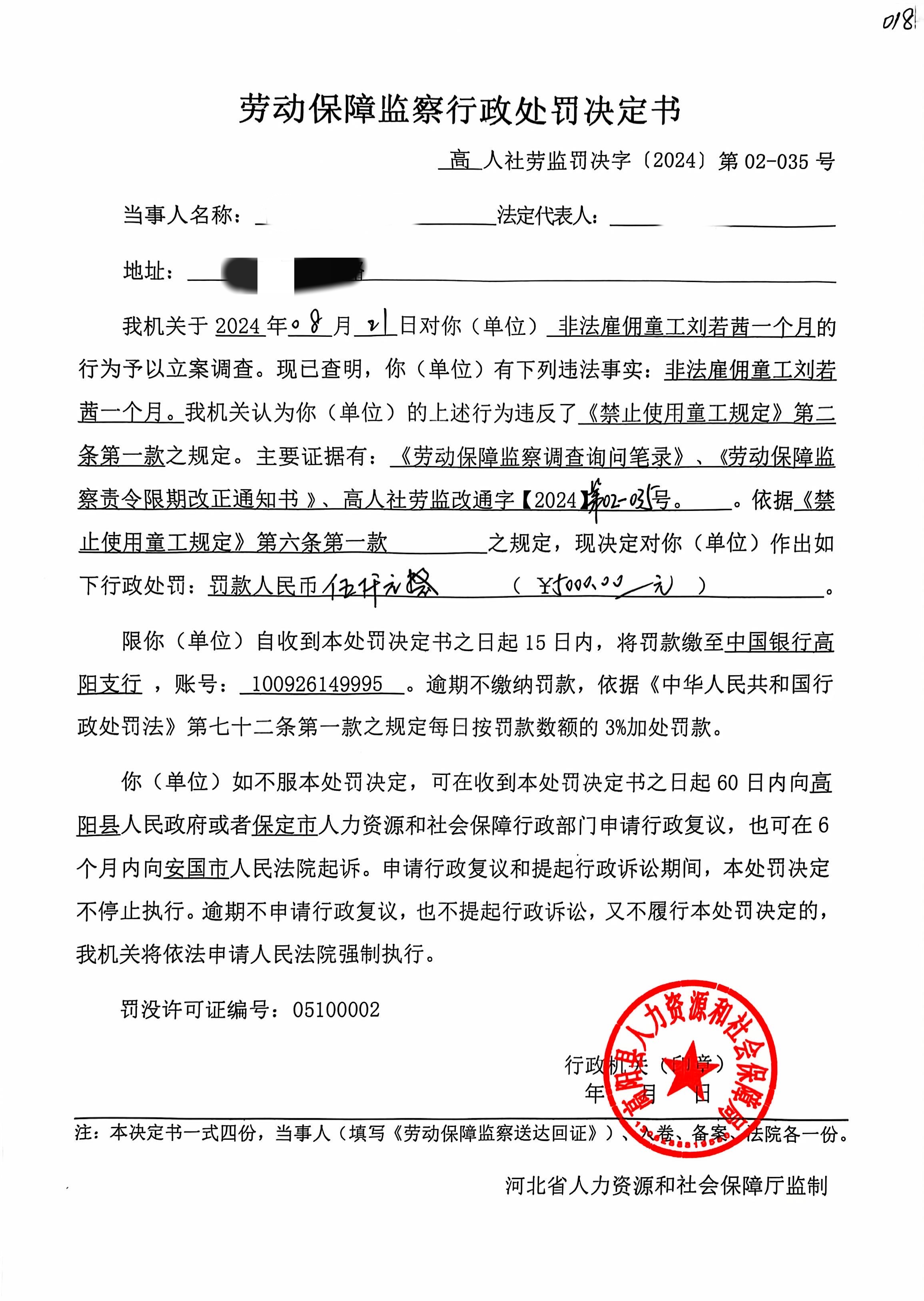 劳动保障监察行政处罚决定书 - 高人社劳监罚决字〔2024〕第02 - 035号