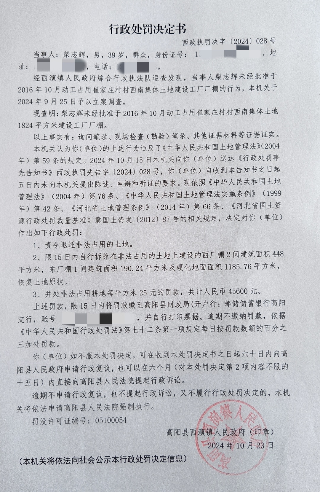 《行政处罚决定书》西政执罚决字〔2024〕028号