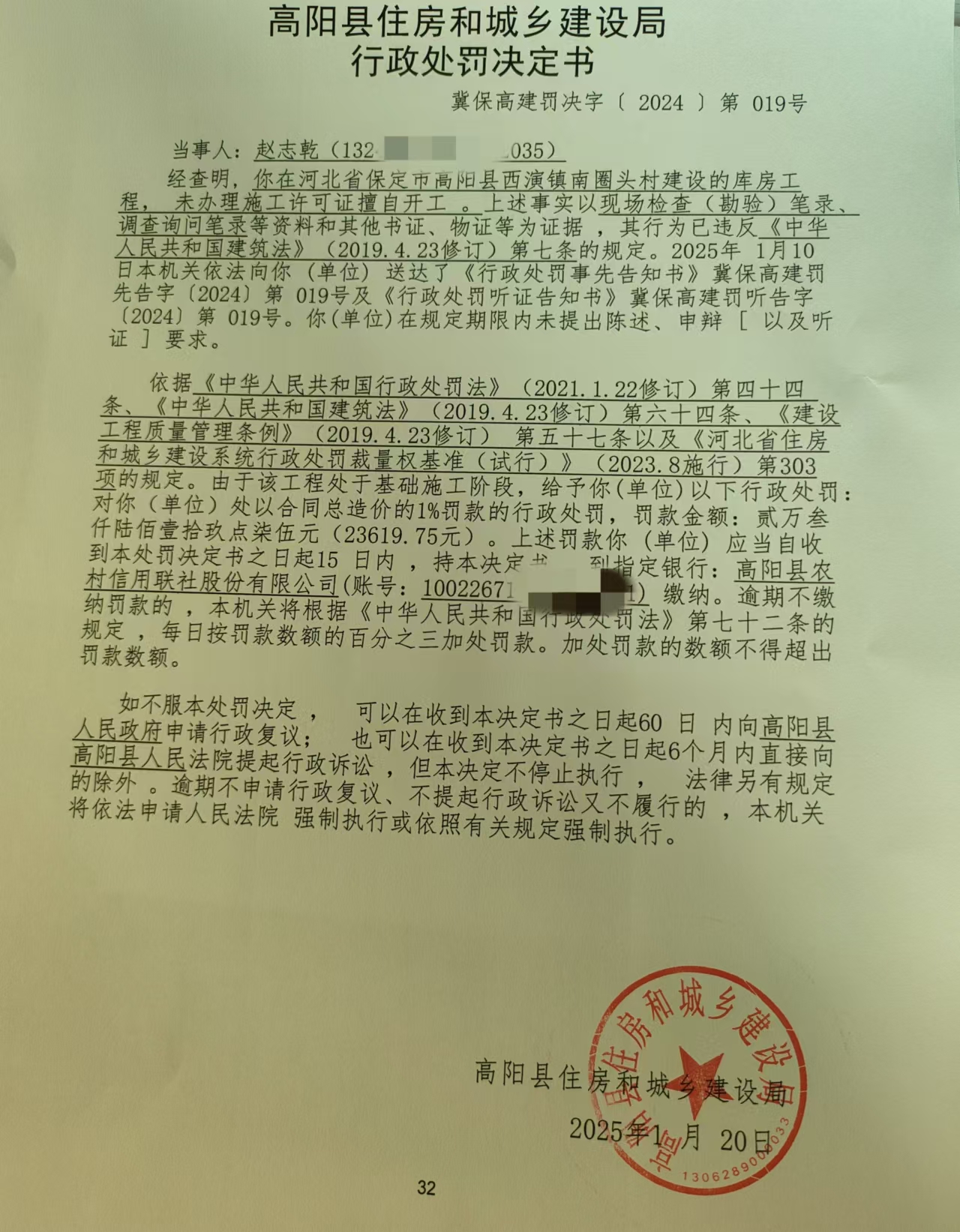 冀保高建罚决字【2024】第019号