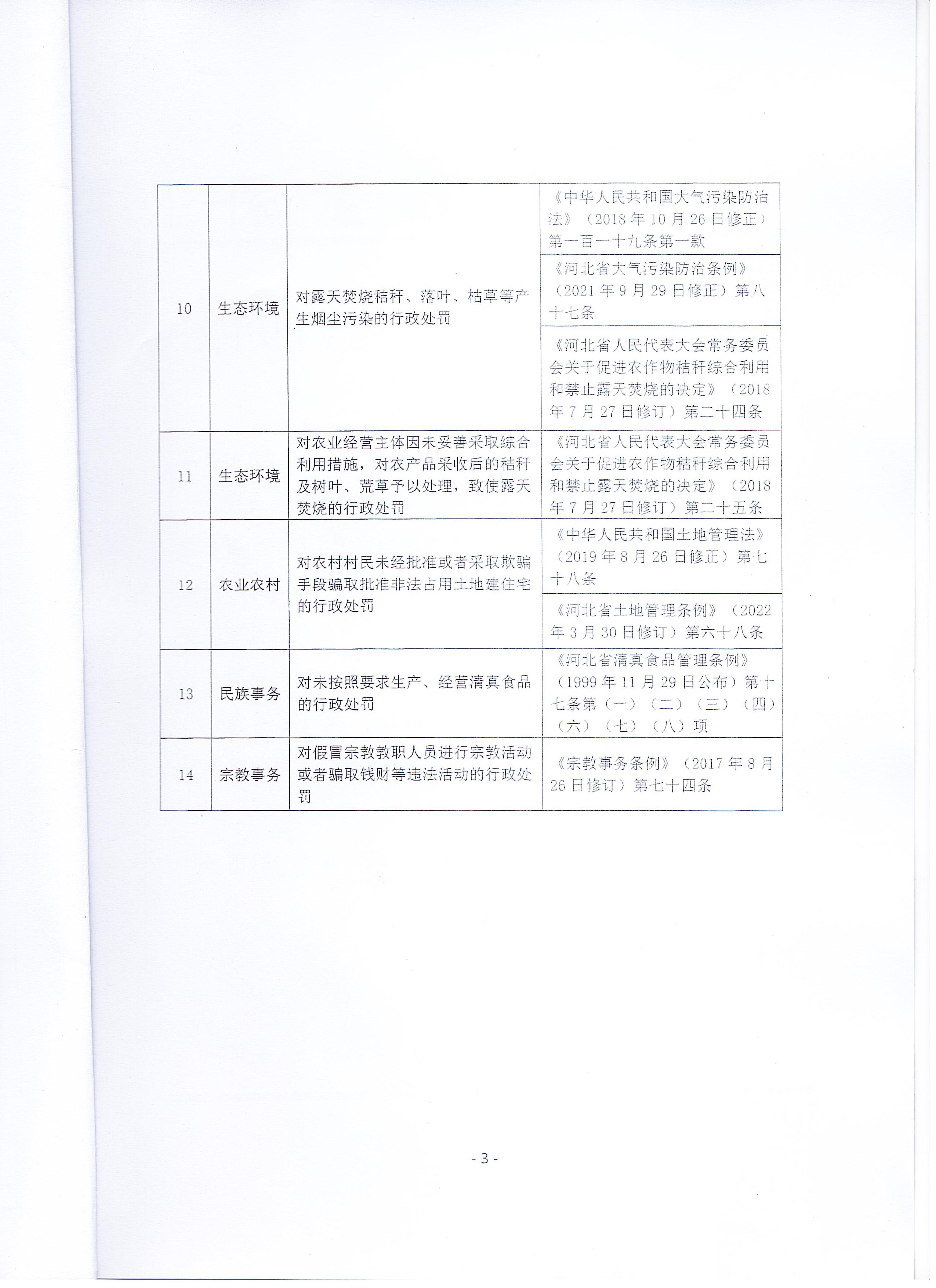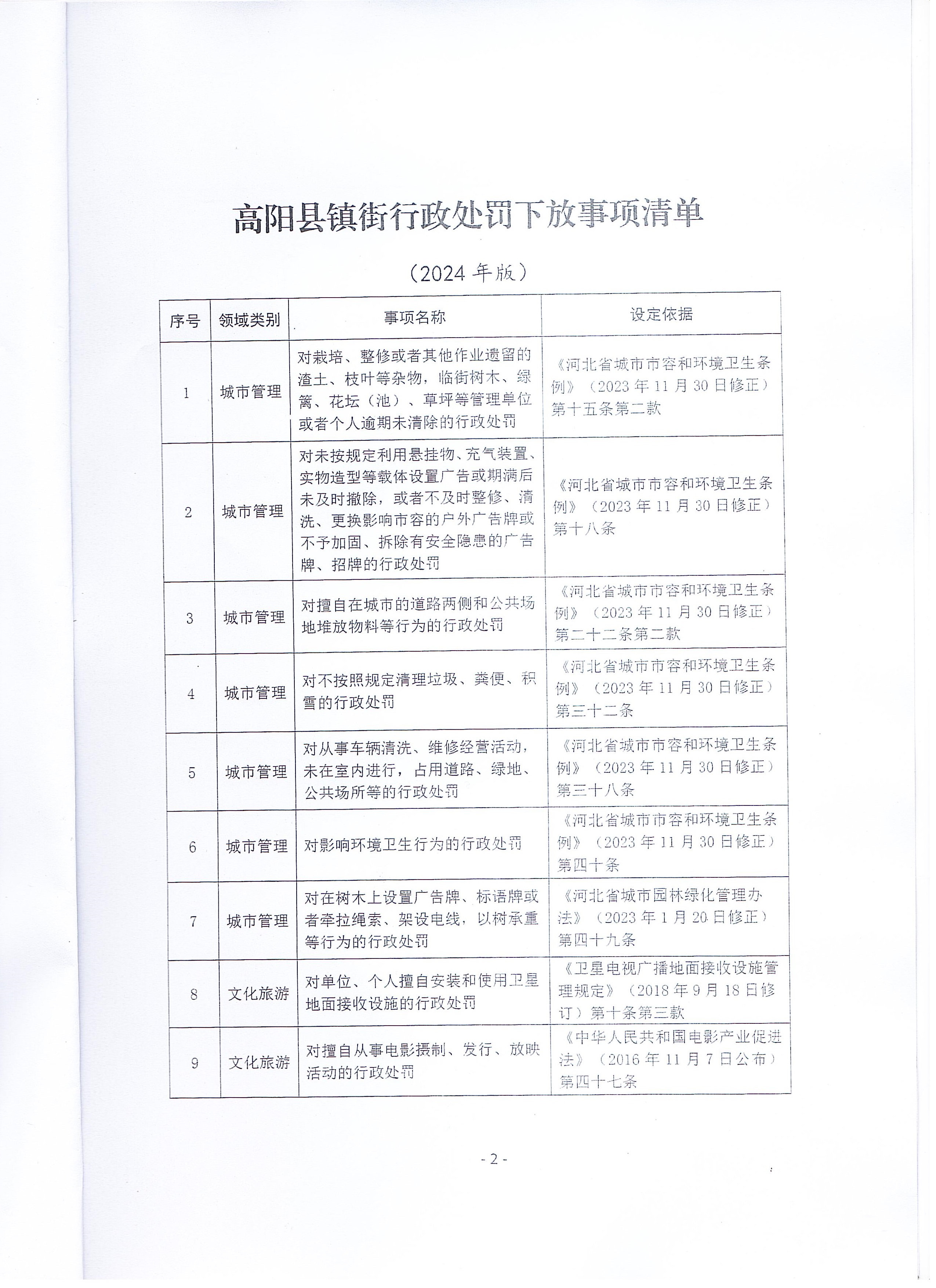 高阳县邢家南镇人民政府镇街行政处罚下放事项清单(2024年版)