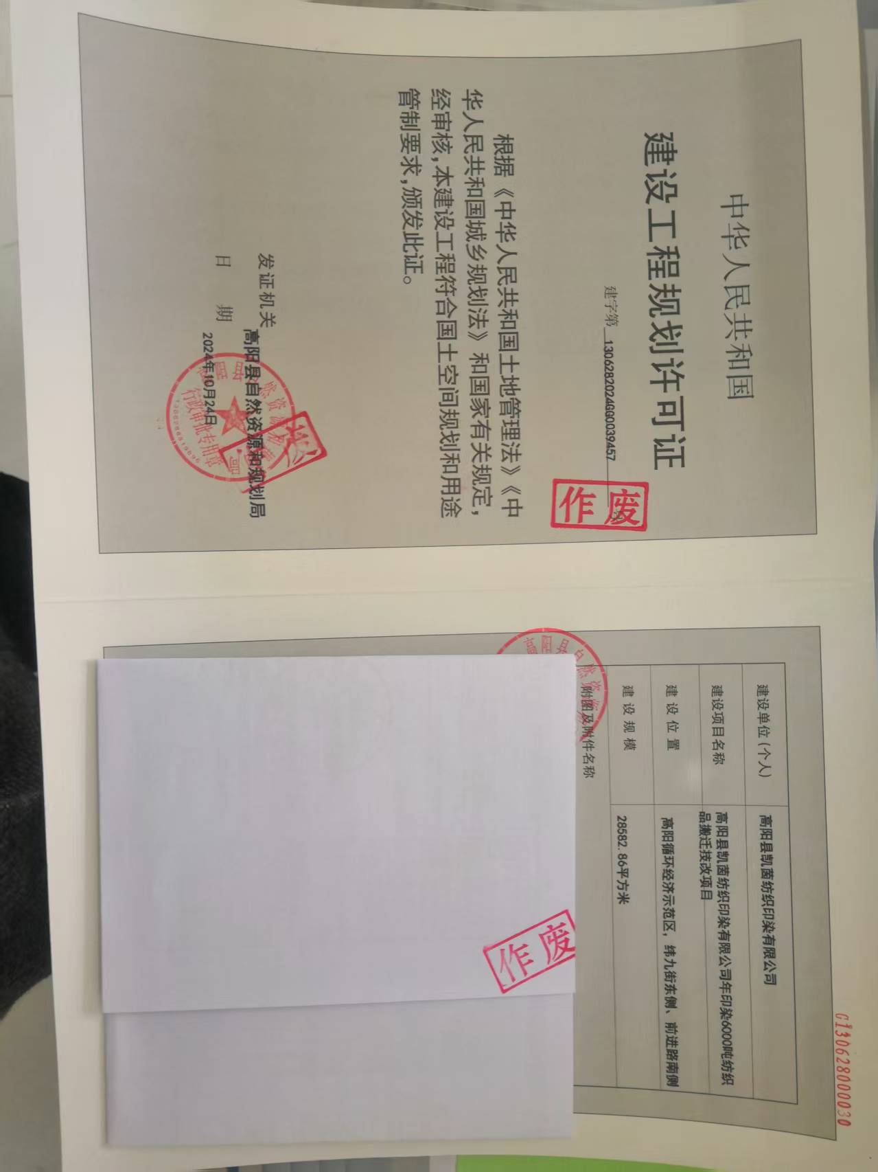 高阳县凯茵纺织印染有限公司年印染6000吨纺织品搬迁技改项目原工程证变更作废