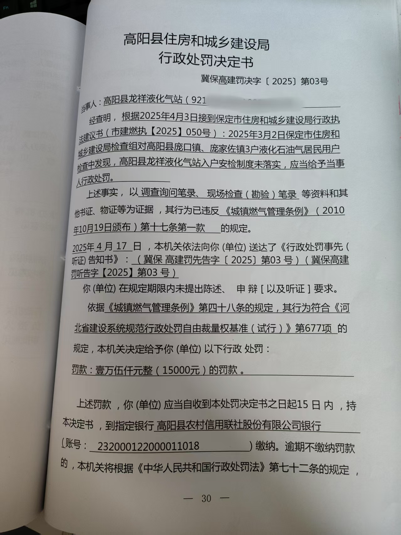 冀保高建罚决字【2025】第03号