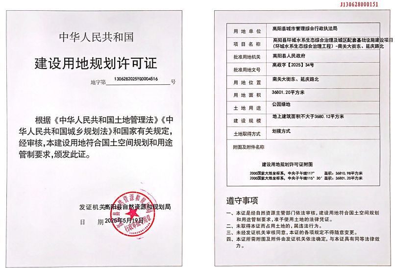 高阳县环城水系生态综合治理及城区配套基础设施建设项目(环城水系生态综合治理工程) - 南关大街东、延庆路北