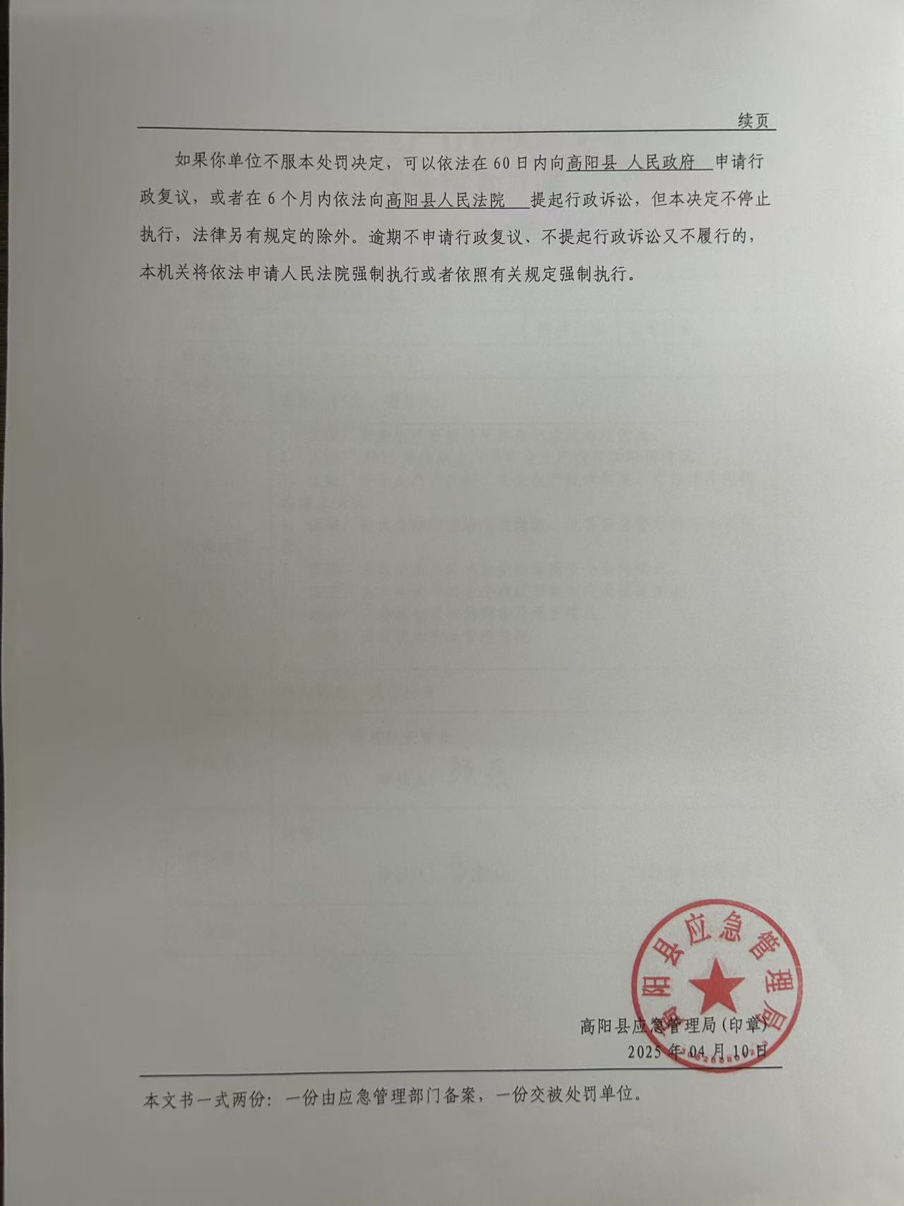 2025年高阳县应急管理局行政处罚决定书005