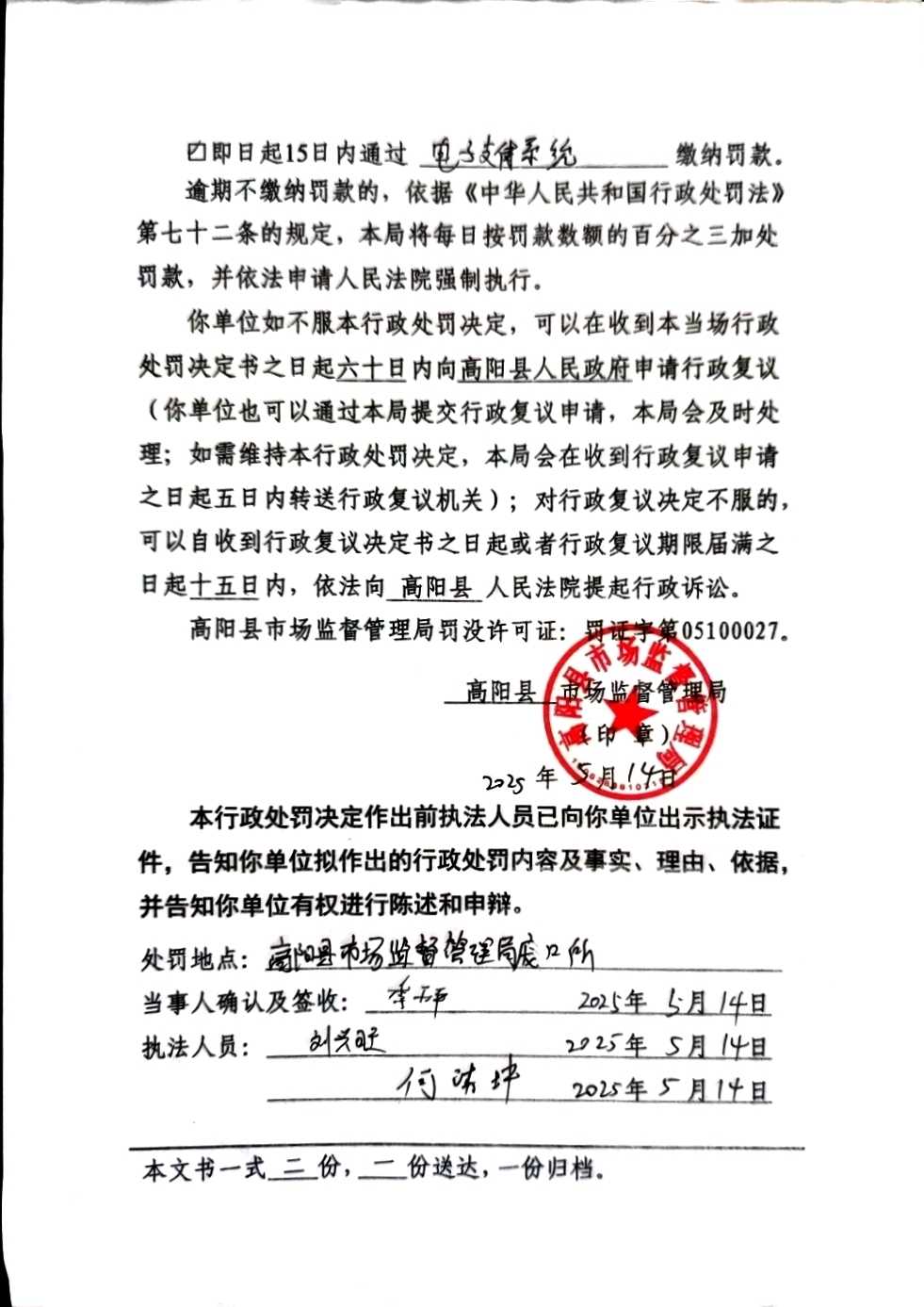 当前位置:首页 > 行政执法公示 > 高阳县市场监督管理局