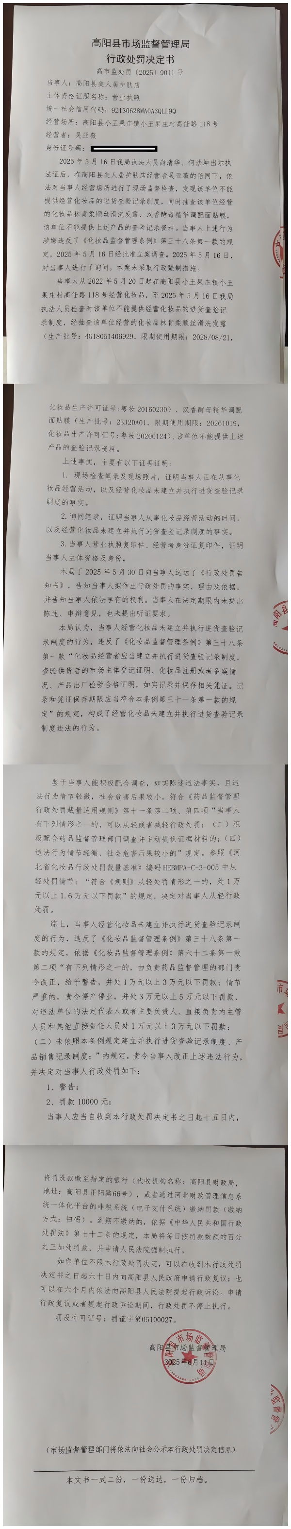 高阳县美人居护肤店经营化妆品 未建立并执行进货查验记录制度案