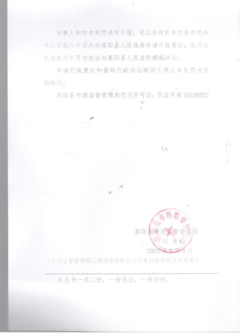 当前位置:首页 > 行政执法公示 > 高阳县市场监督管理局