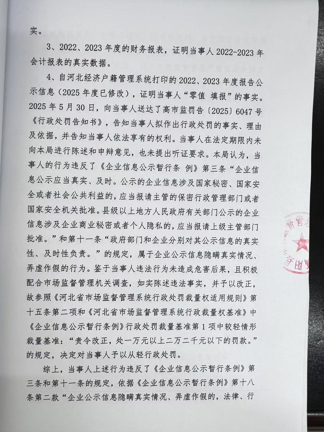 高阳县萌康纺织品制造有限公司企业公示信息隐瞒真实情况、弄虚作假案