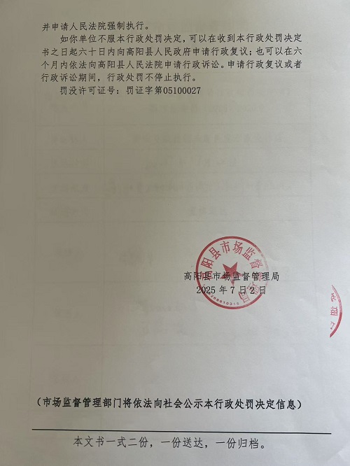 当前位置:首页 > 行政执法公示 > 高阳县市场监督管理局