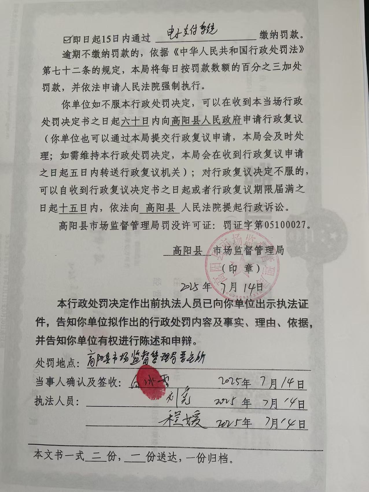 当前位置:首页 > 行政执法公示 > 高阳县市场监督管理局