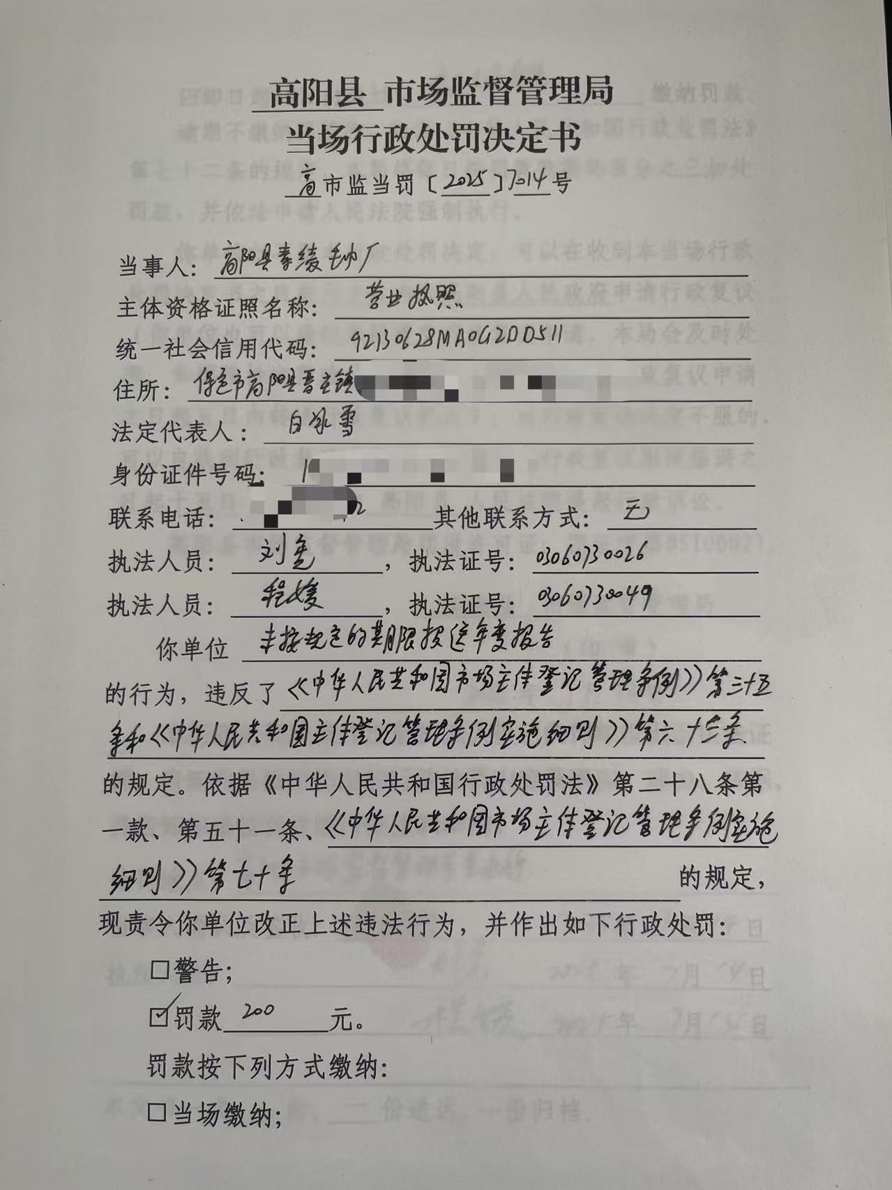 高阳县素綾毛巾厂未按规定的期限报送年度报告案