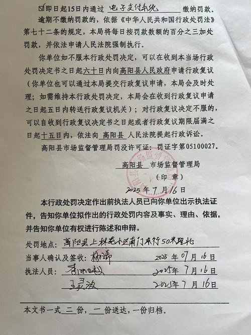 当前位置:首页 > 行政执法公示 > 高阳县市场监督管理局