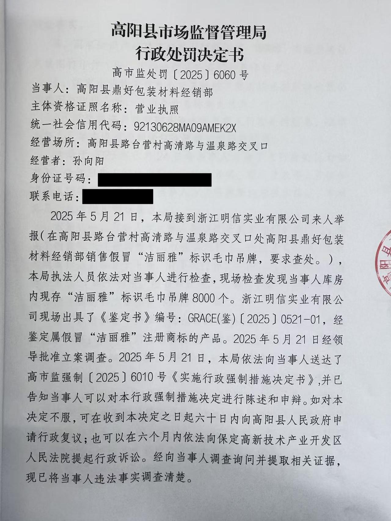 高阳县鼎好包装材料经销部销售侵犯注册商标专用权标识