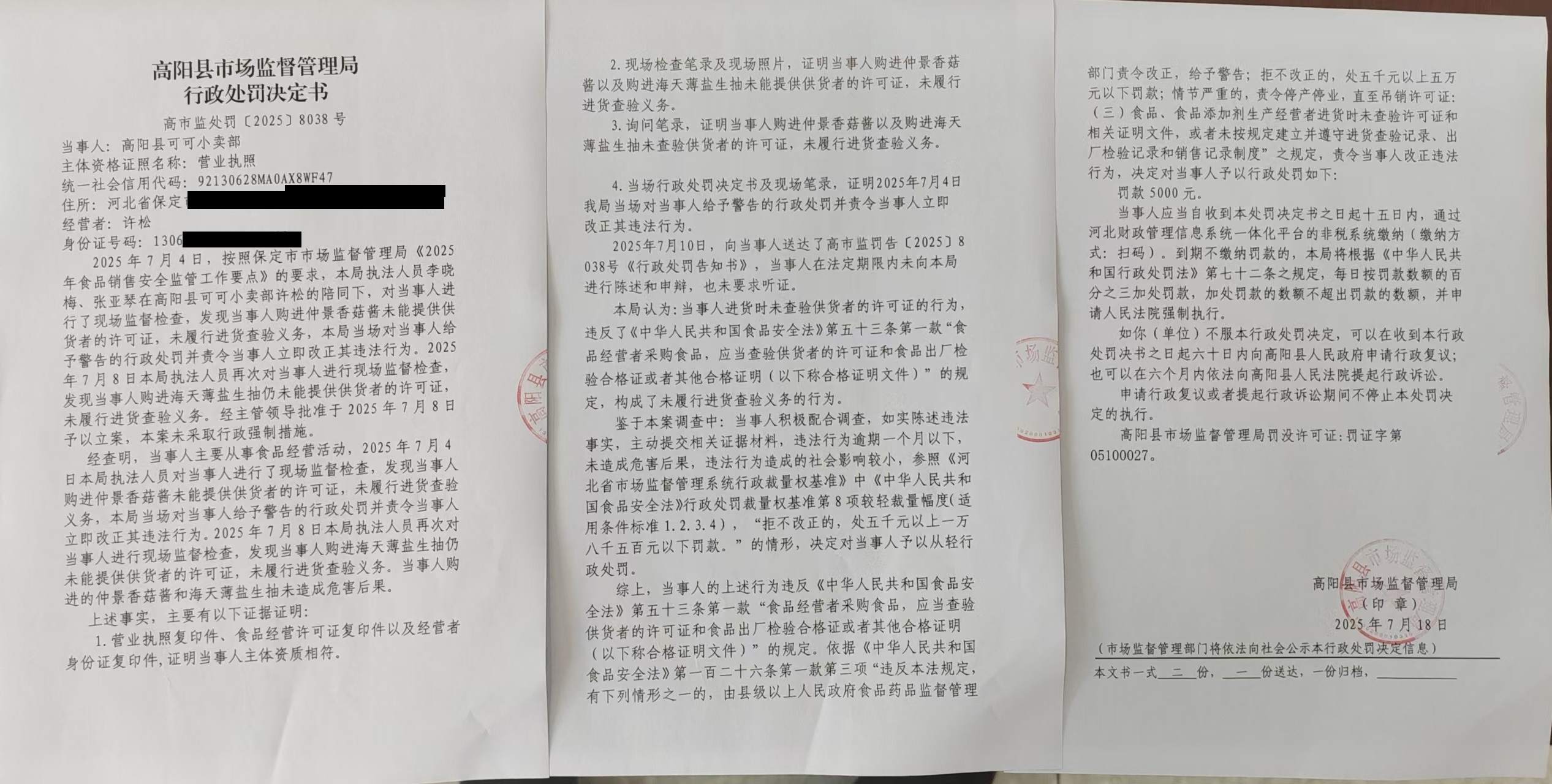 当前位置:首页 > 行政执法公示 > 高阳县市场监督管理局