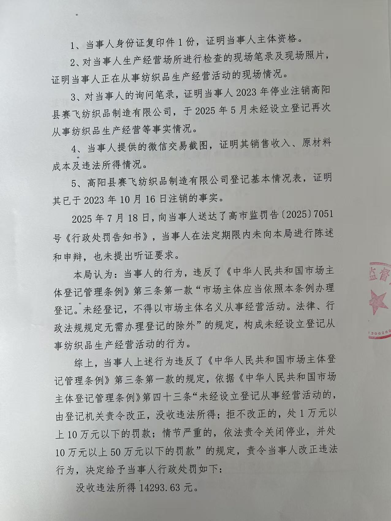 彭贝贝未经设立登记从事纺织品生产经营活动案