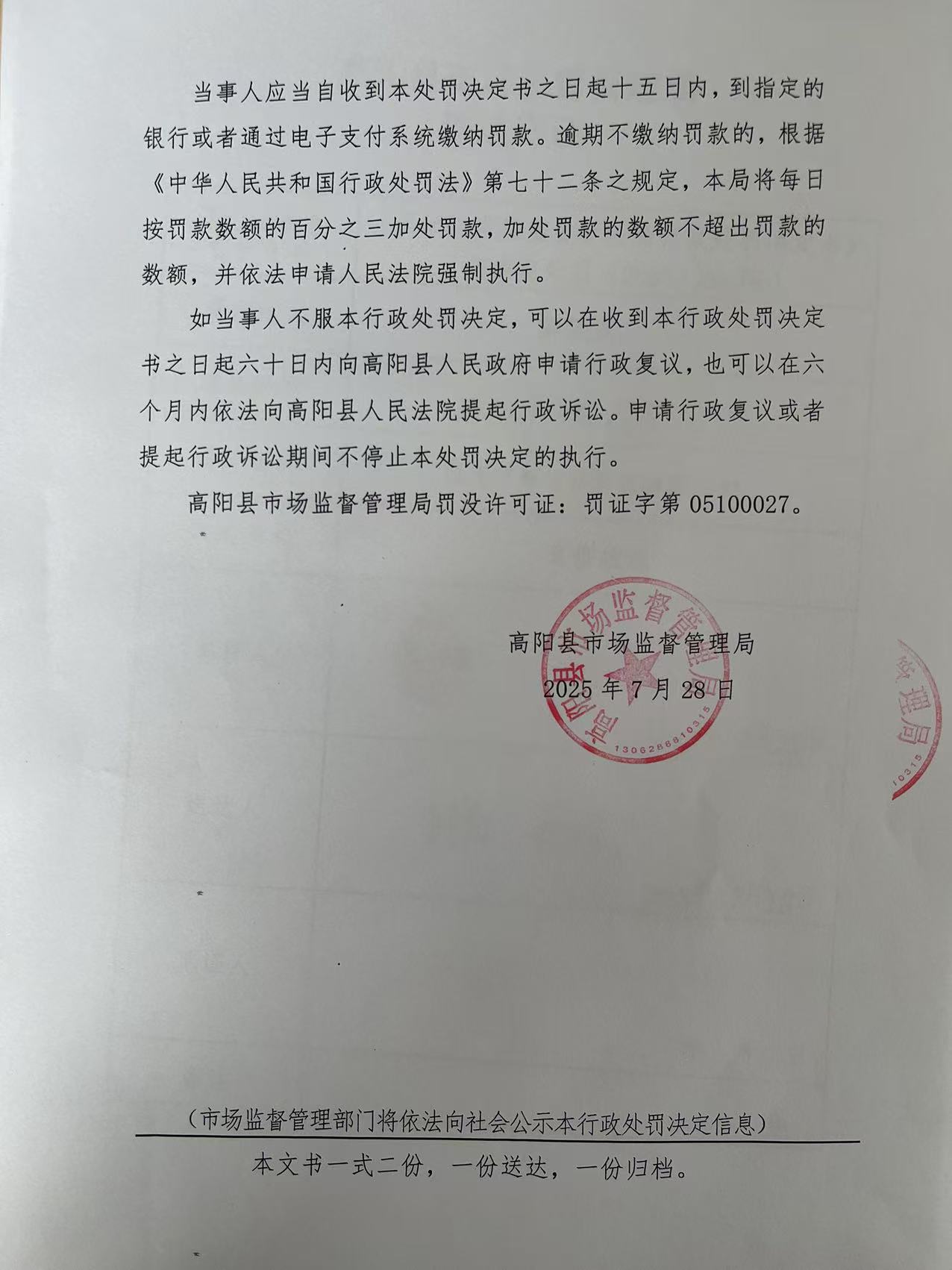 当前位置:首页 > 行政执法公示 > 高阳县市场监督管理局