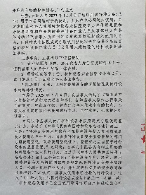 高阳县凌峰纺织品制造有限公司使用未经检验的特种设备案