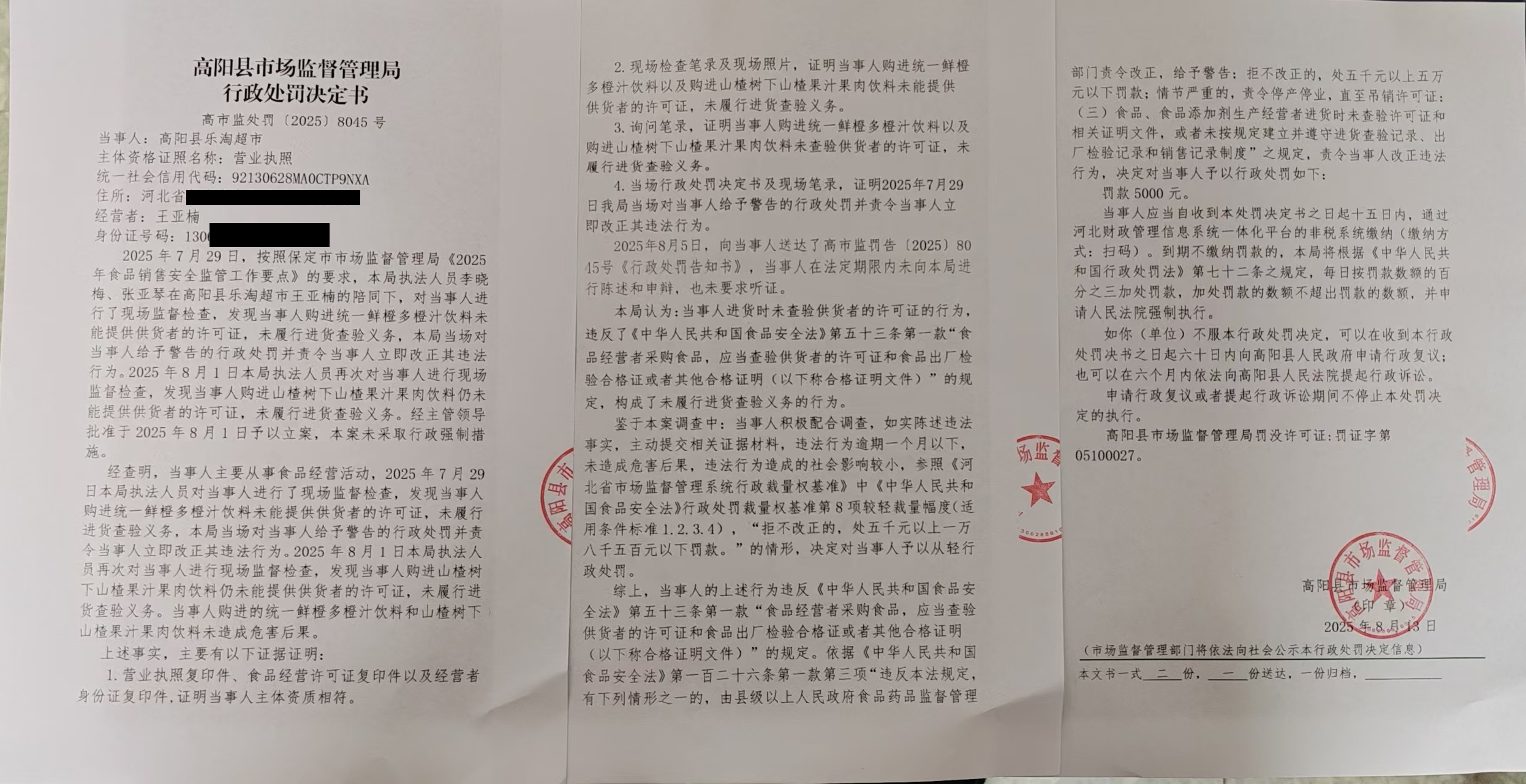 当前位置:首页 > 行政执法公示 > 高阳县市场监督管理局