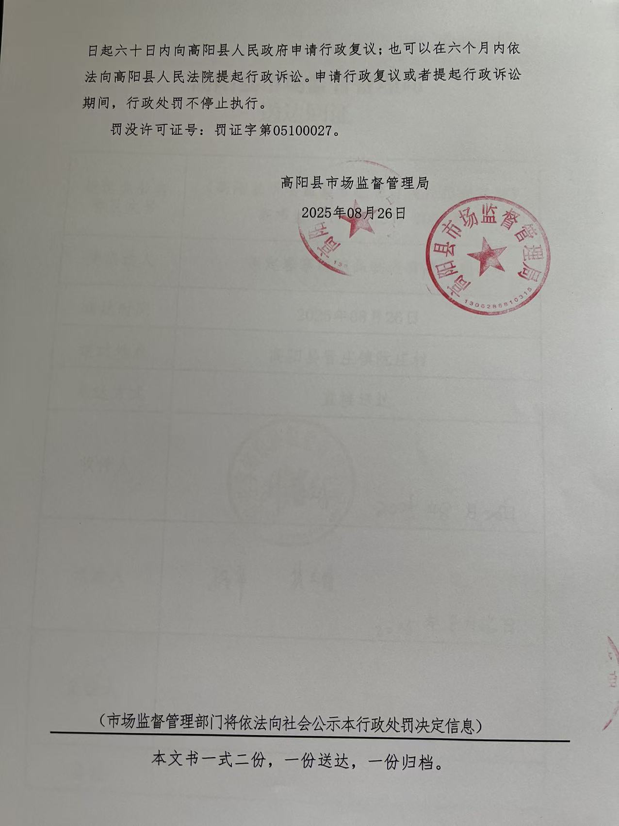 当前位置:首页 > 行政执法公示 > 高阳县市场监督管理局