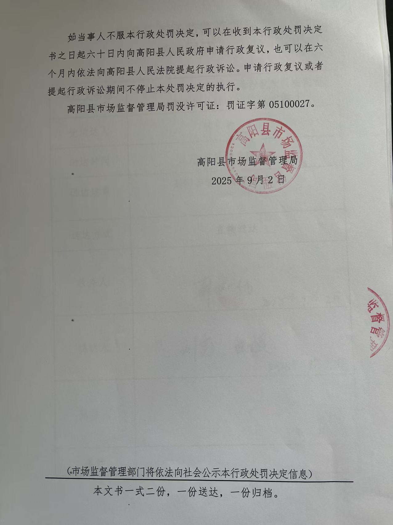 当前位置:首页 > 行政执法公示 > 高阳县市场监督管理局