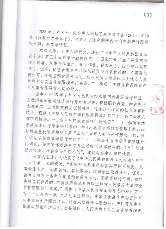 高阳县禾田顺餐饮店未取得食品经营许可从事食品经营活动案