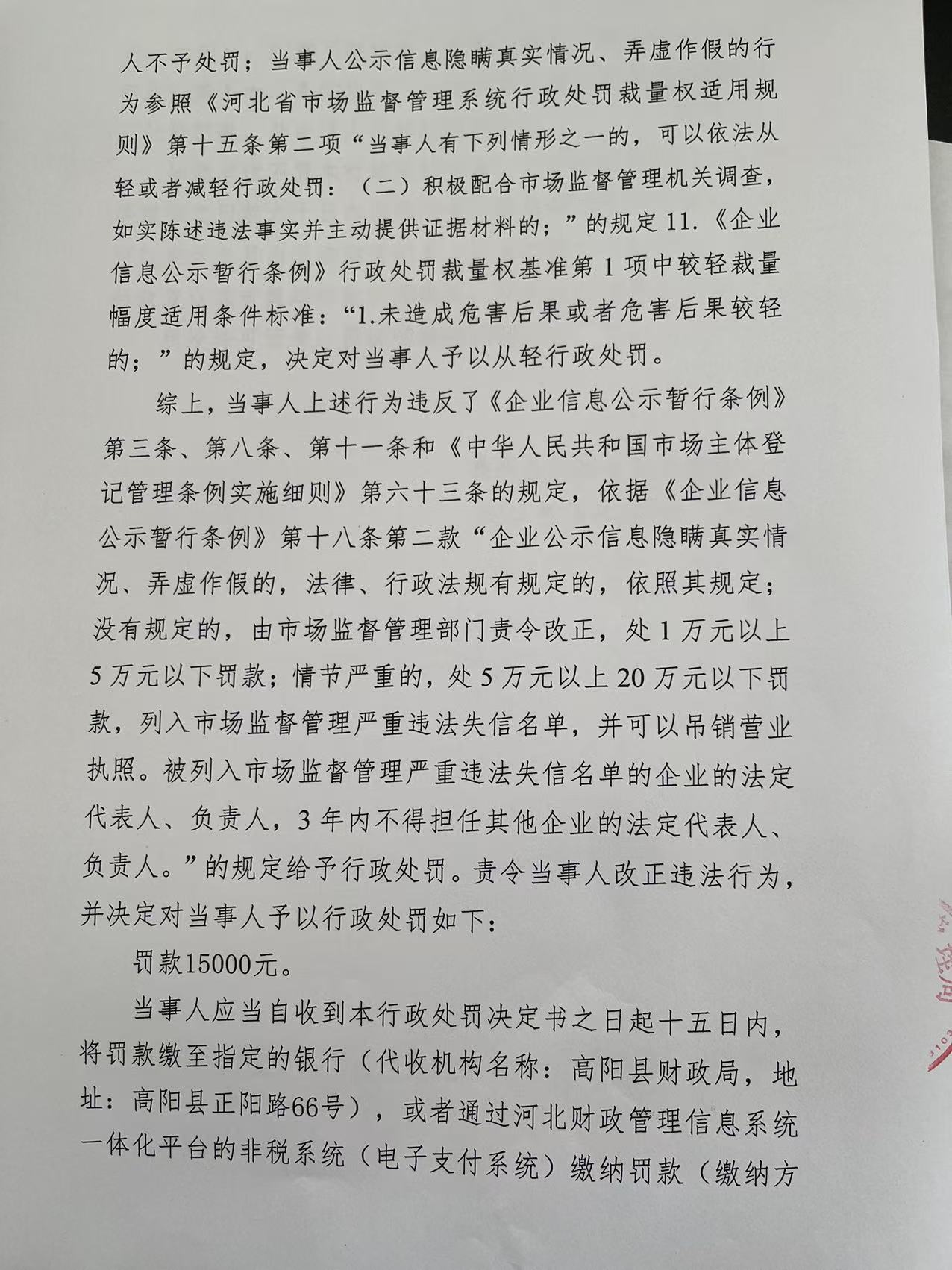 高阳县宏飞纺织品制造有限公司企业公示信息隐瞒真实情况、弄虚作假案