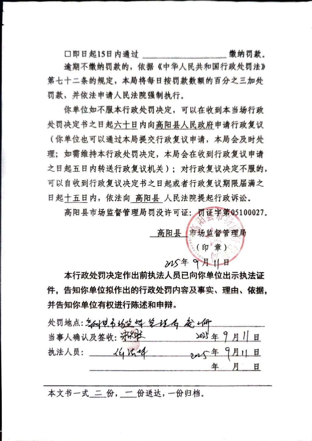 当前位置:首页 > 行政执法公示 > 高阳县市场监督管理局