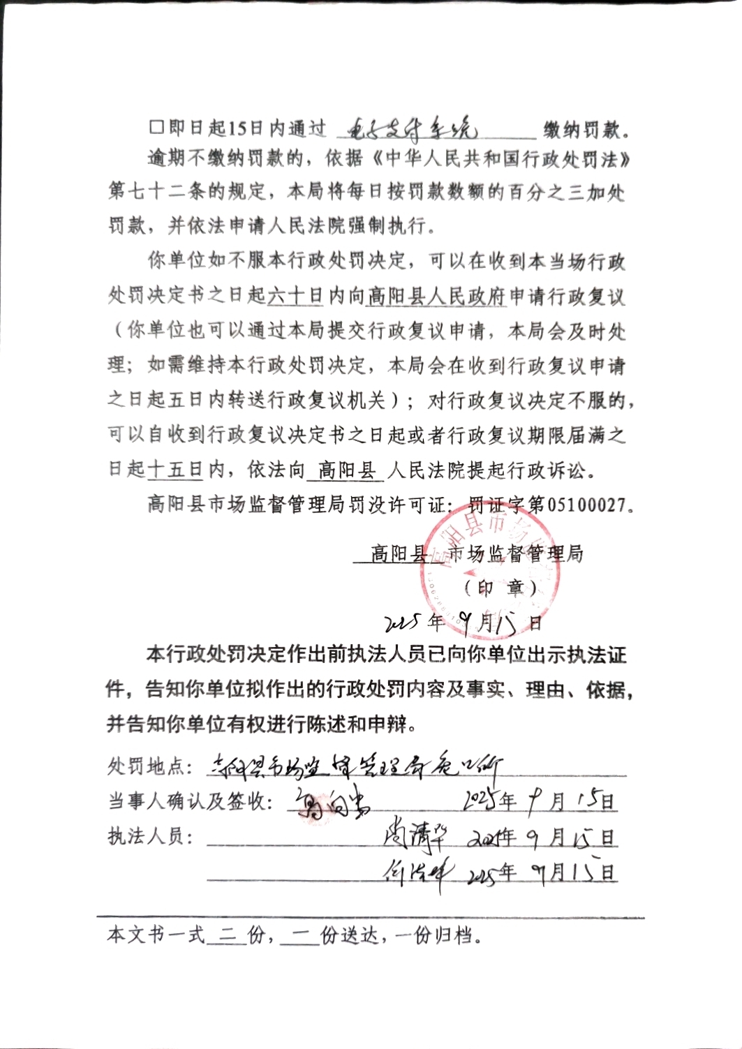 当前位置:首页 > 行政执法公示 > 高阳县市场监督管理局