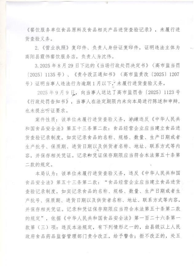 高阳县霞伟餐饮店未履行进货查验义务案