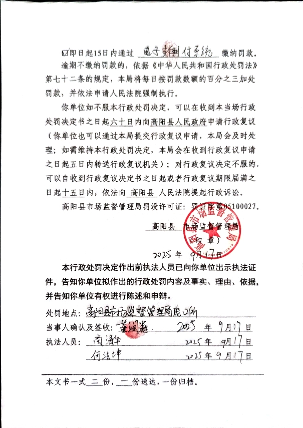 当前位置:首页 > 行政执法公示 > 高阳县市场监督管理局