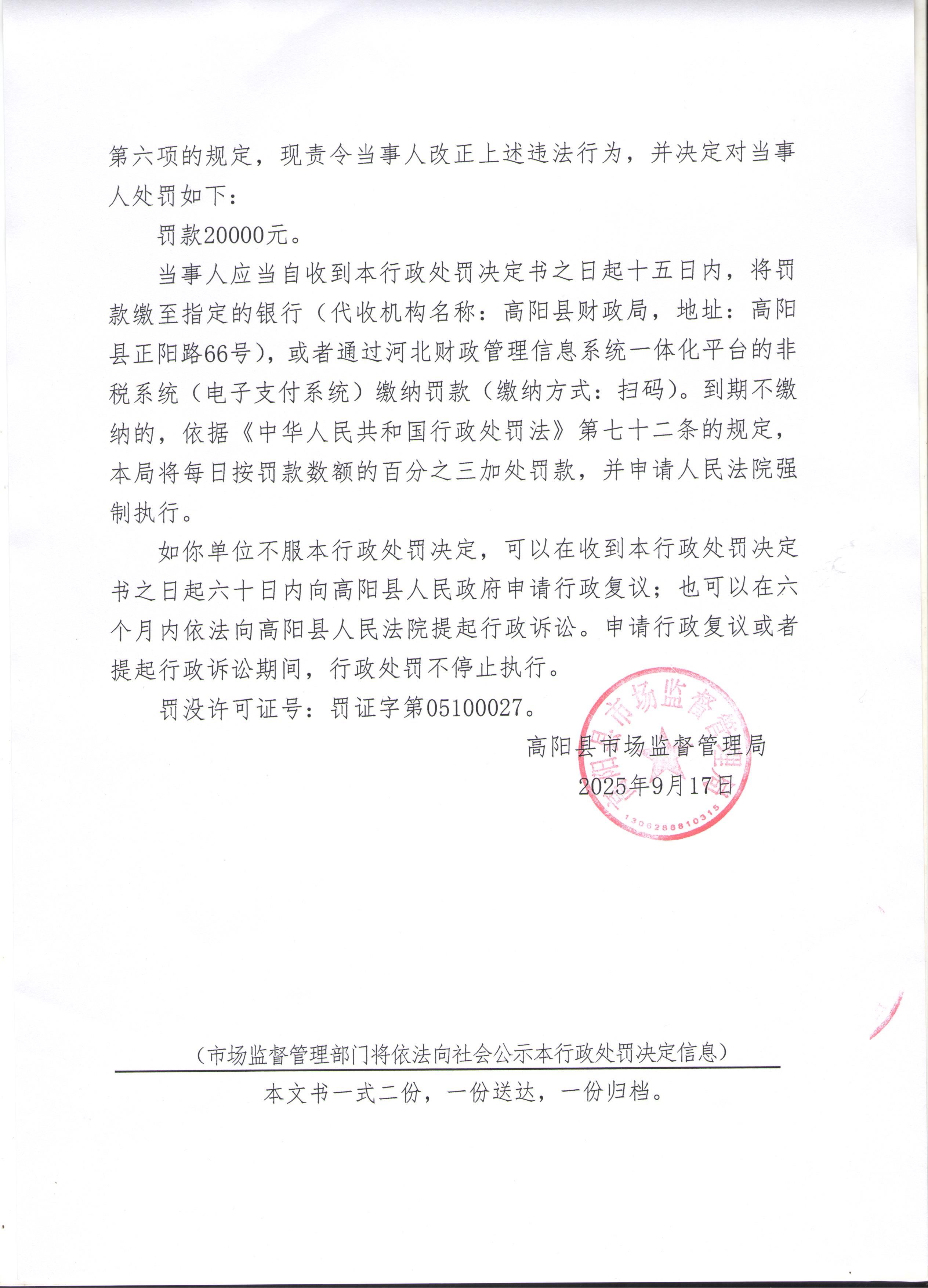 当前位置:首页 > 行政执法公示 > 高阳县市场监督管理局