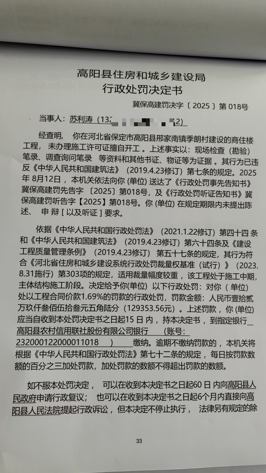 冀保高建罚决字【2025】第018号