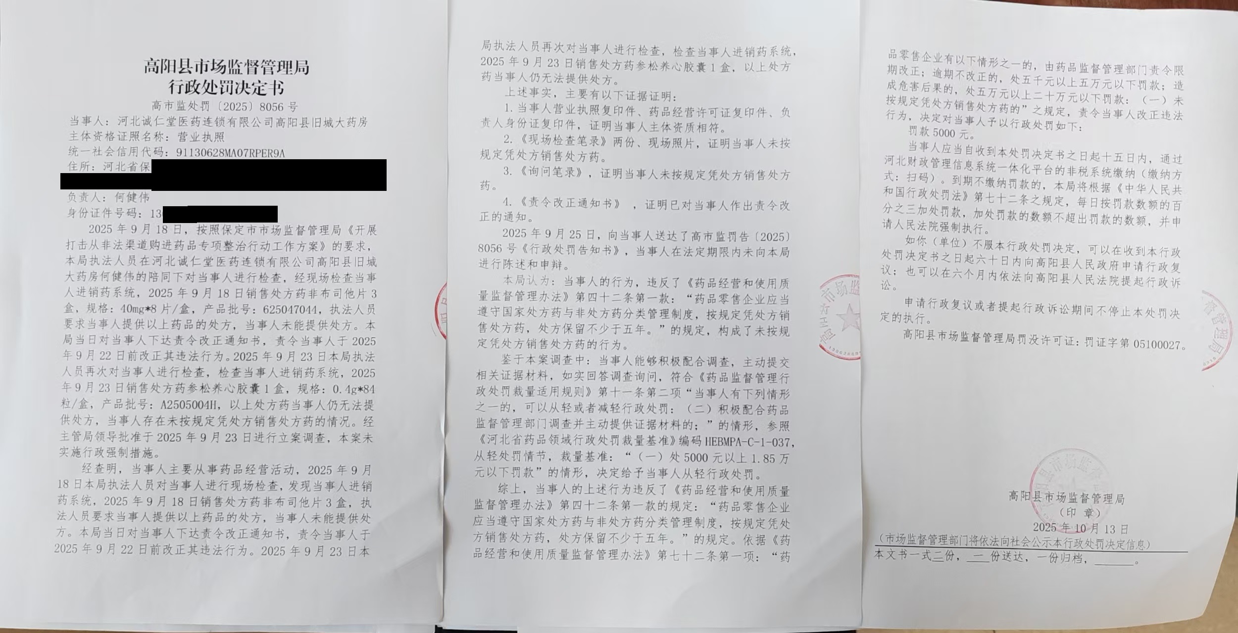 河北诚仁堂医药连锁有限公司高阳县旧城大药房未按规定凭处方销售处方药案
