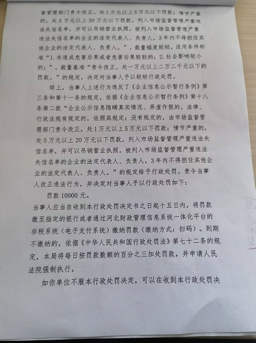 高阳县正弘建材销售有限公司企业公示信息隐瞒真实情况、弄虚作假案