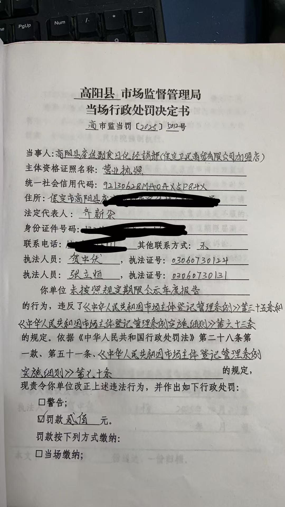 高阳县庞佐副食日化经销部未按照规定期限公示年度报告案