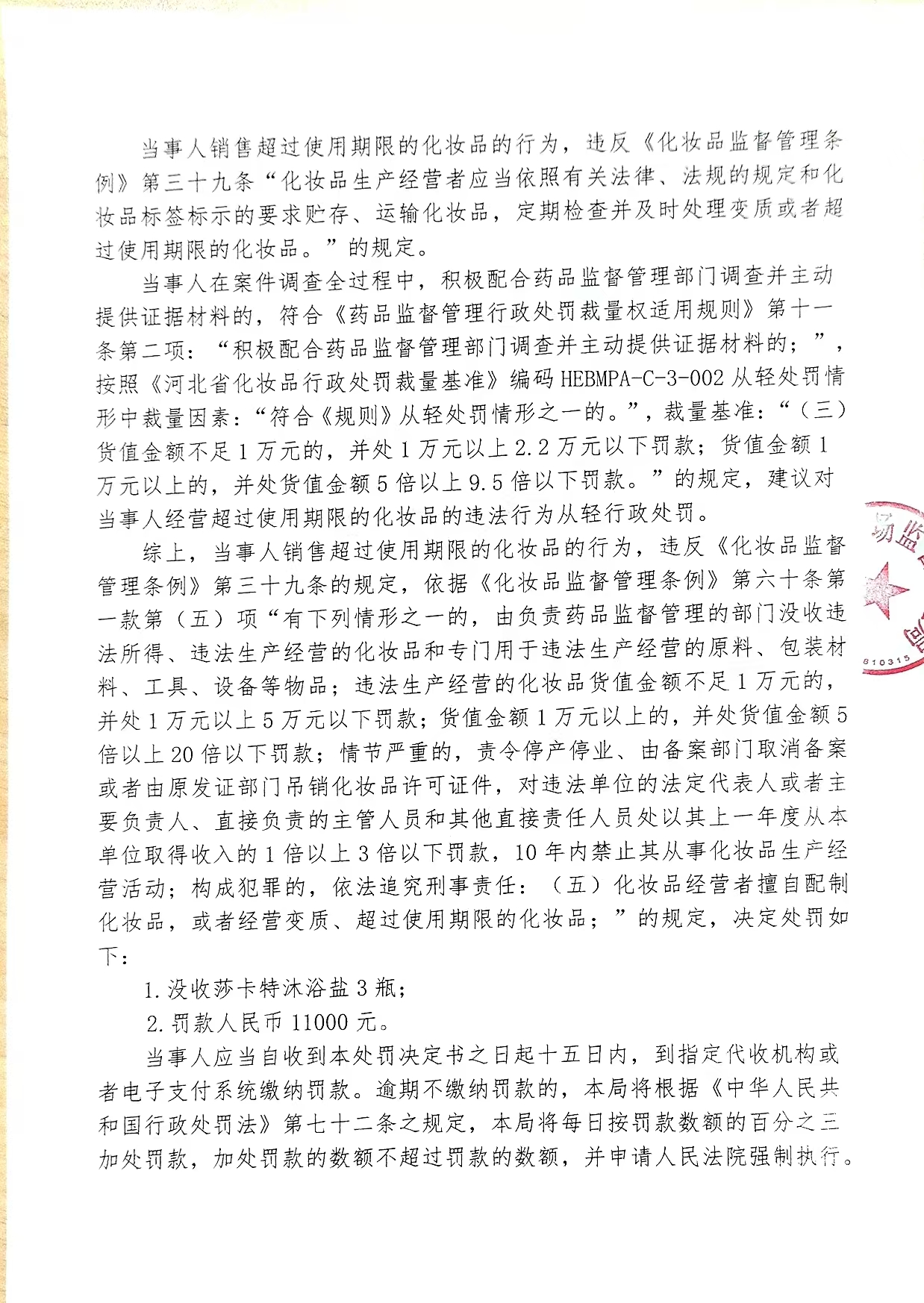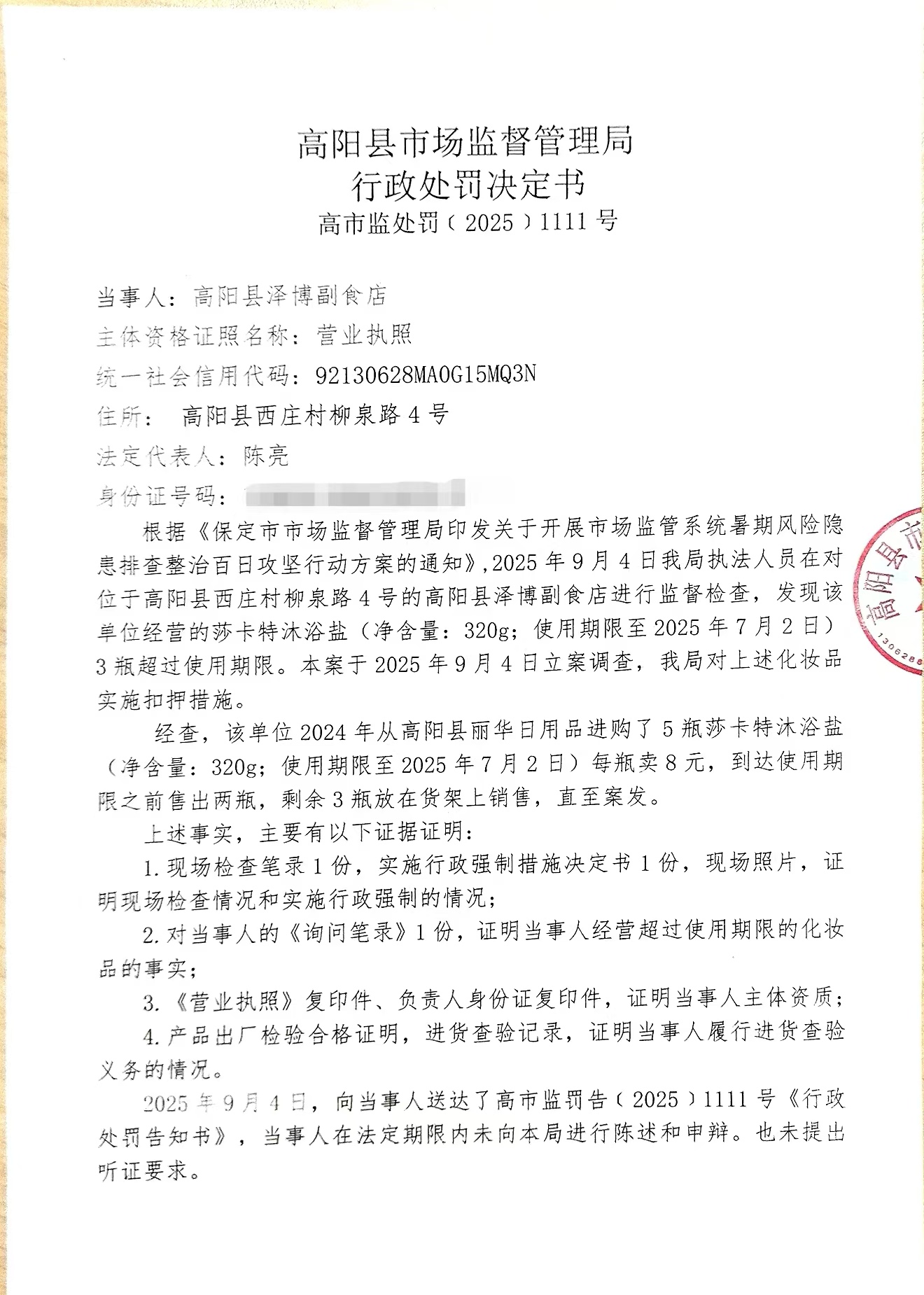 高阳县泽博副食店经营超过使用期限的化妆品案