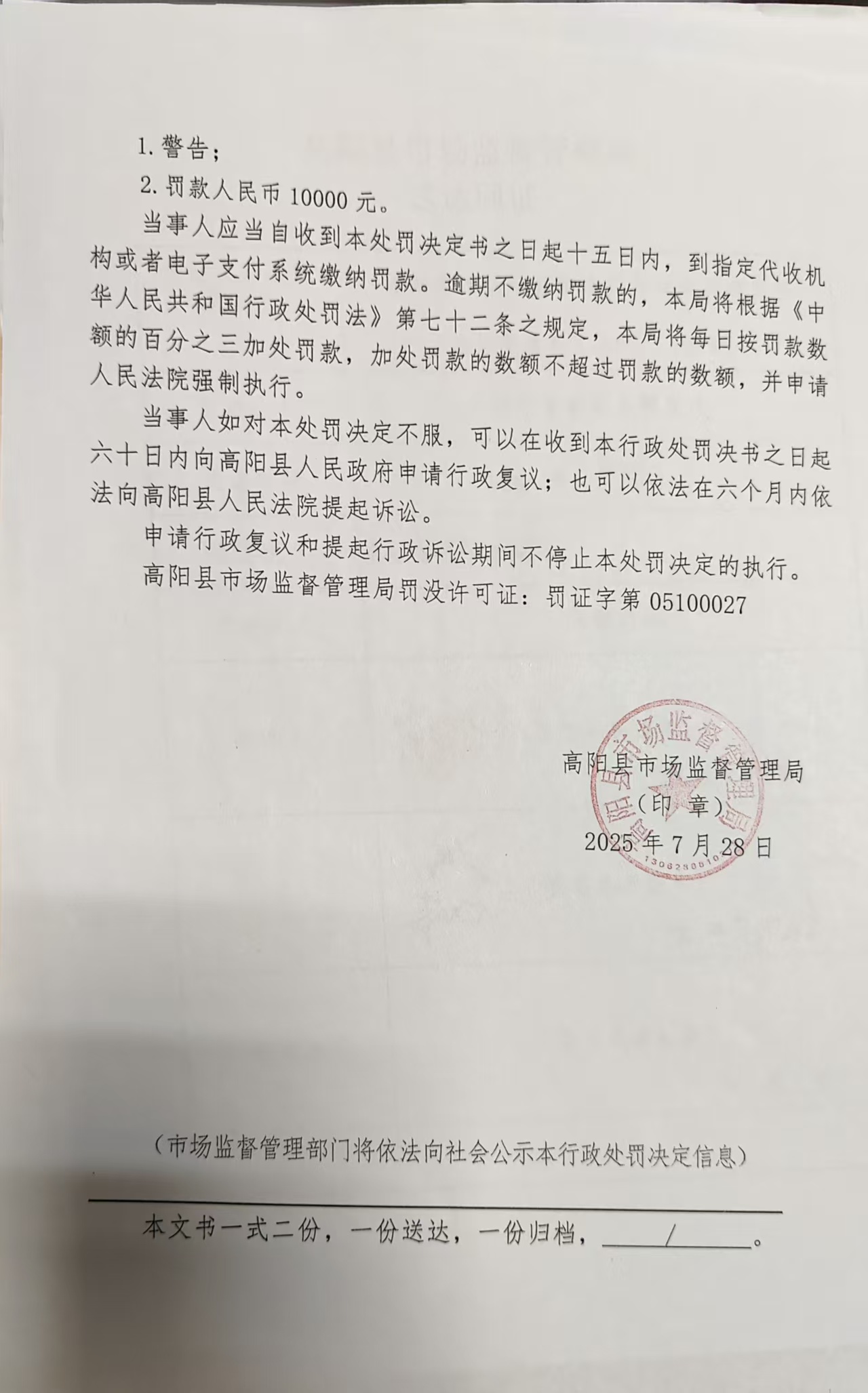 当前位置:首页 > 行政执法公示 > 高阳县市场监督管理局