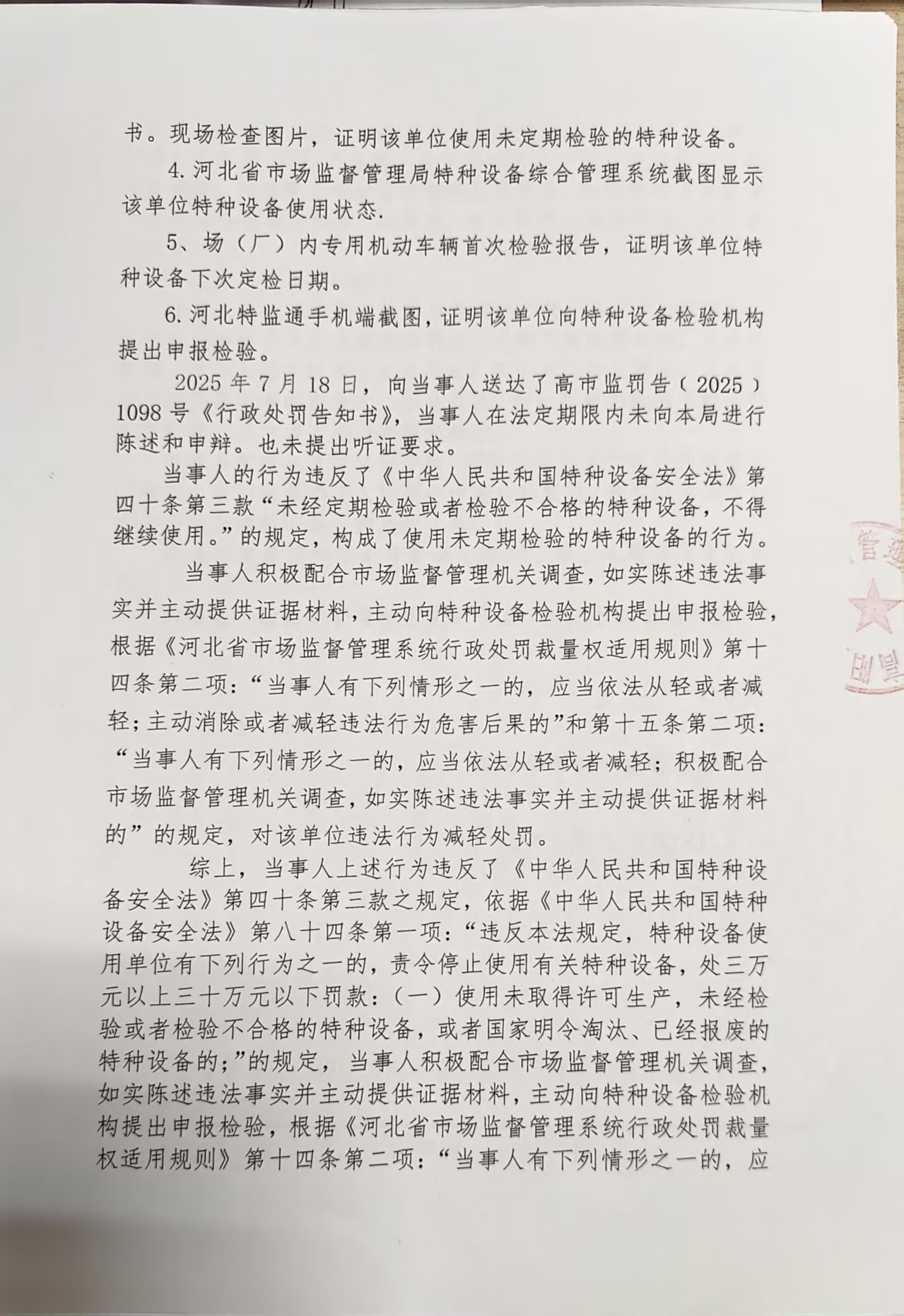 高阳县森朗副食品经销部使用未经定期检验的特种设备案