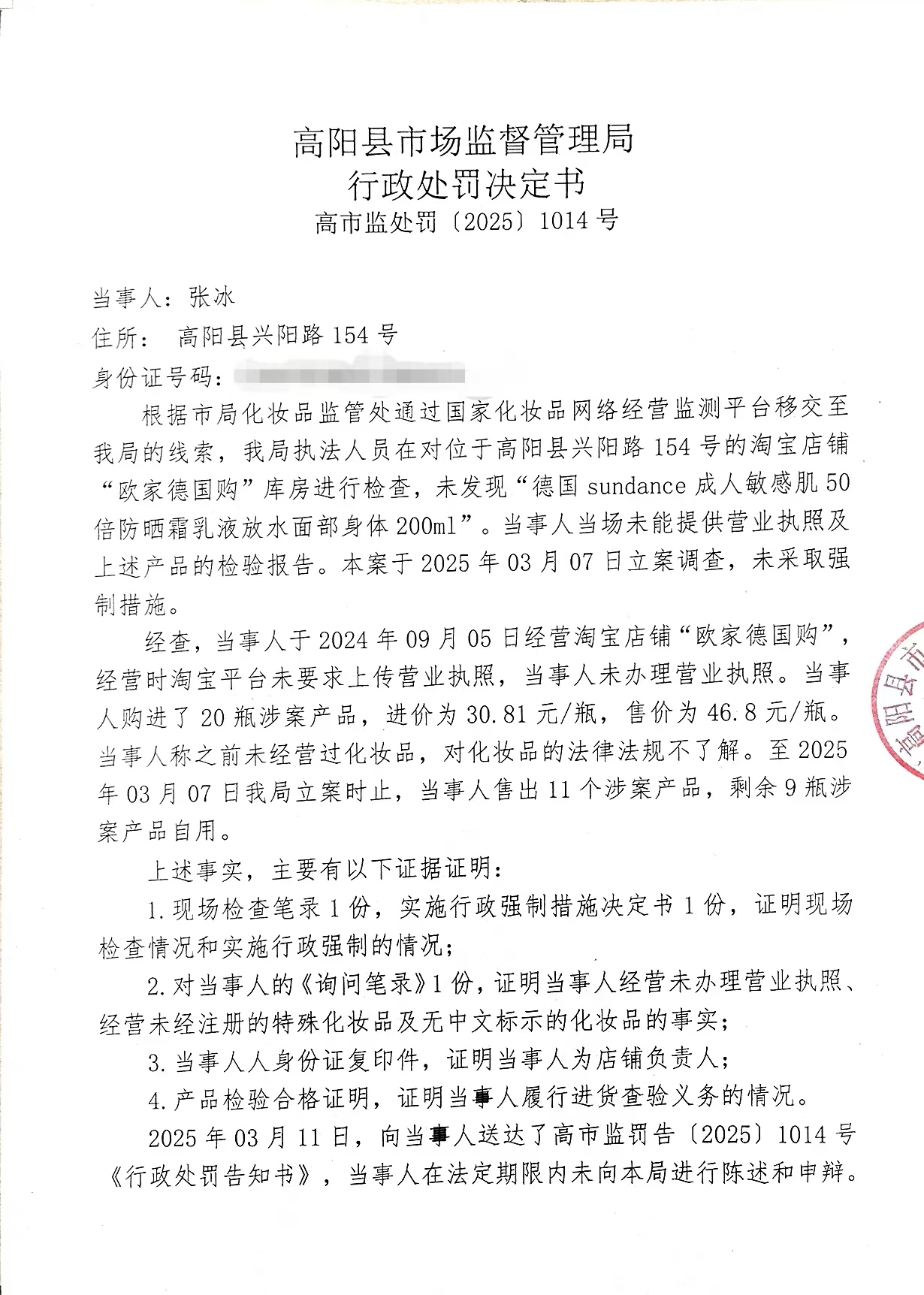 张冰未经设立登记从事化妆品销售、经营未经注册的特殊化妆品和经营无中文标签的化妆品案